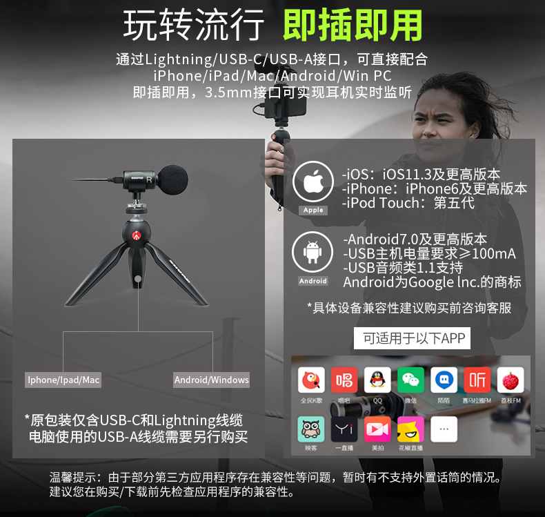 商品名称:Shure/舒尔 mv88+电容便携式手机话筒唱歌麦克风直播采访录音