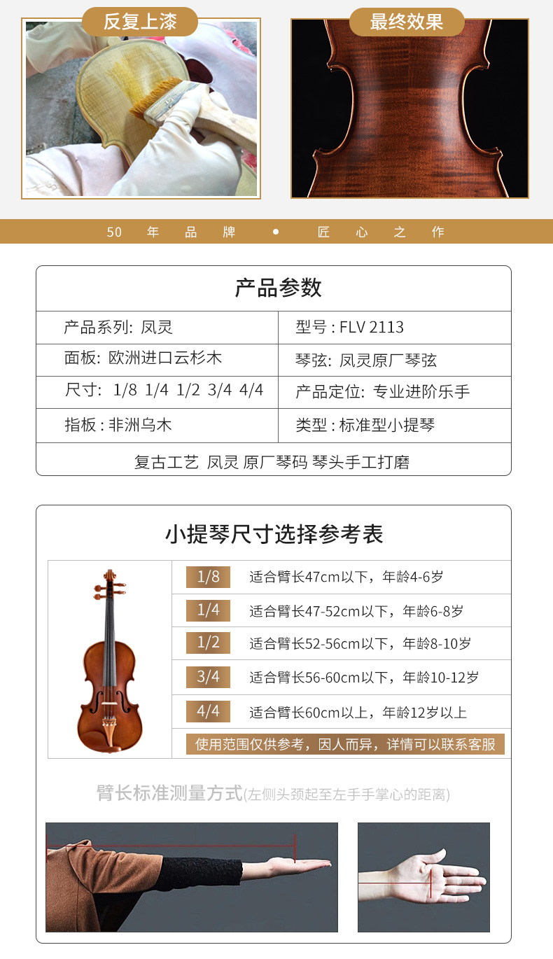 商品名称:凤灵小提琴专业演奏级手工实木初学者高档儿童进阶成人乐器