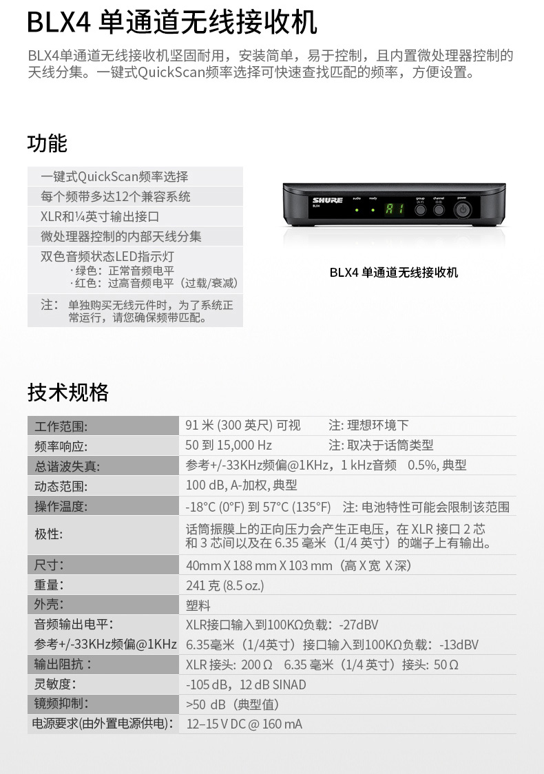 商品名称:Shure/舒尔 BLX24/SM58 无线麦克风话筒 直播会议演出家庭K歌专用