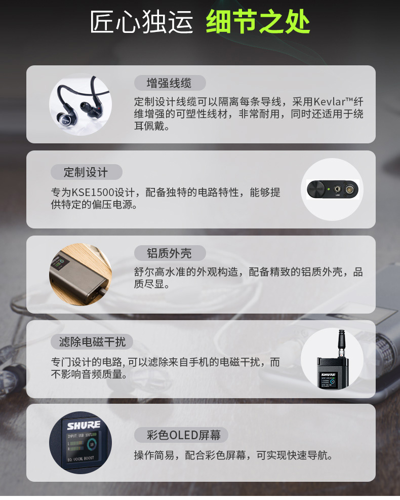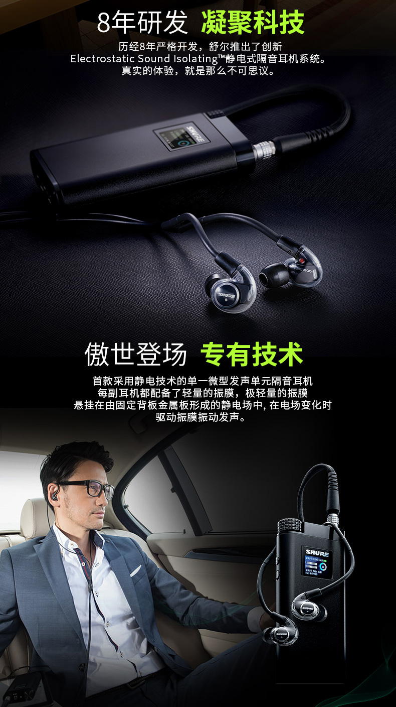 商品名称:Shure/舒尔 KSE1500入耳式耳机 静电式微型发声单元 带耳放