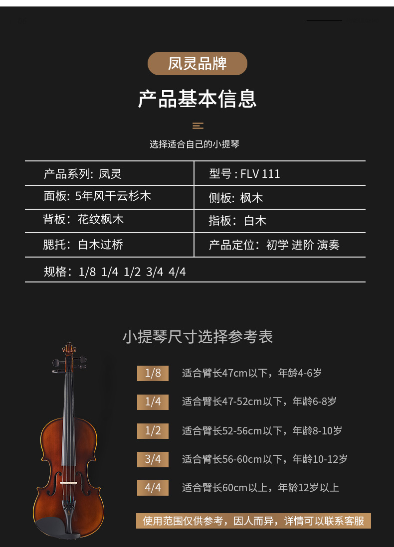 商品名称:凤灵小提琴虎纹考级演奏级初学入门手工实木乐器专业级学生成人