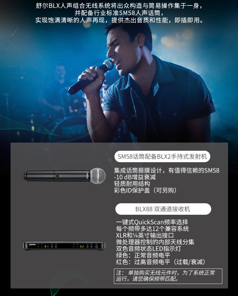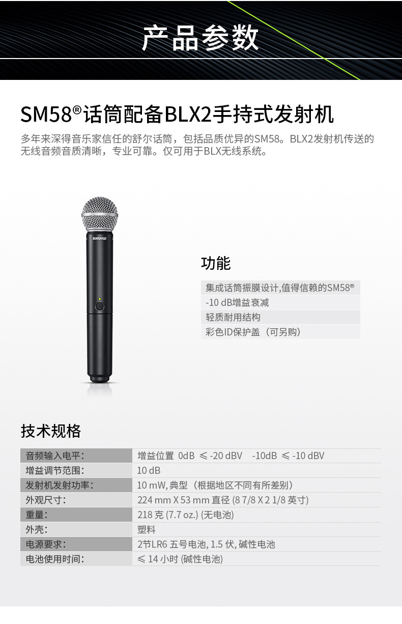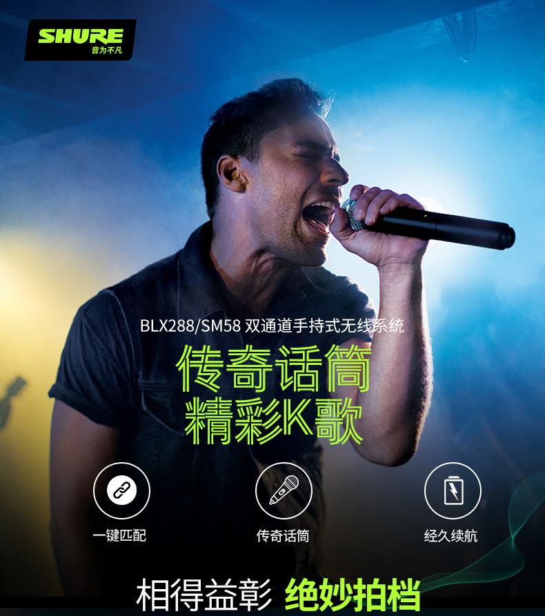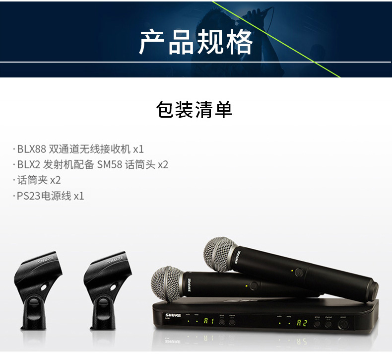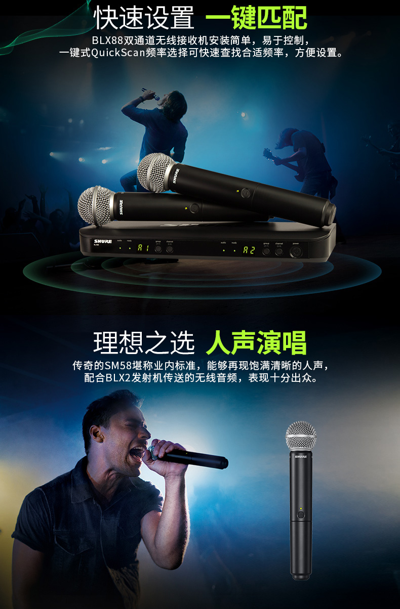 商品名称:Shure/舒尔 BLX288/SM58 专业一拖二无线话筒家庭K歌演出会议专用