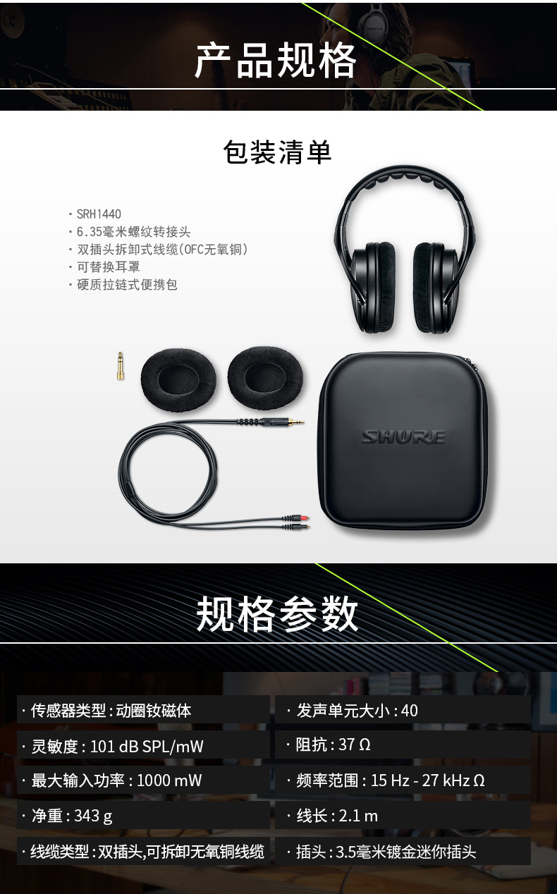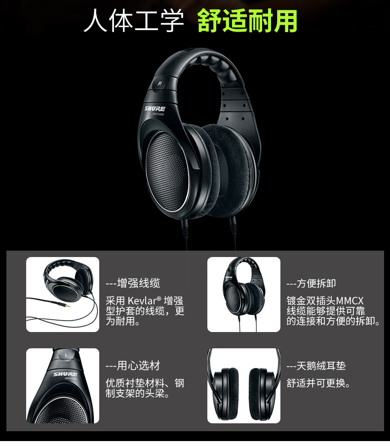 商品名称:Shure/舒尔 SRH1440 专业开放式头戴耳机