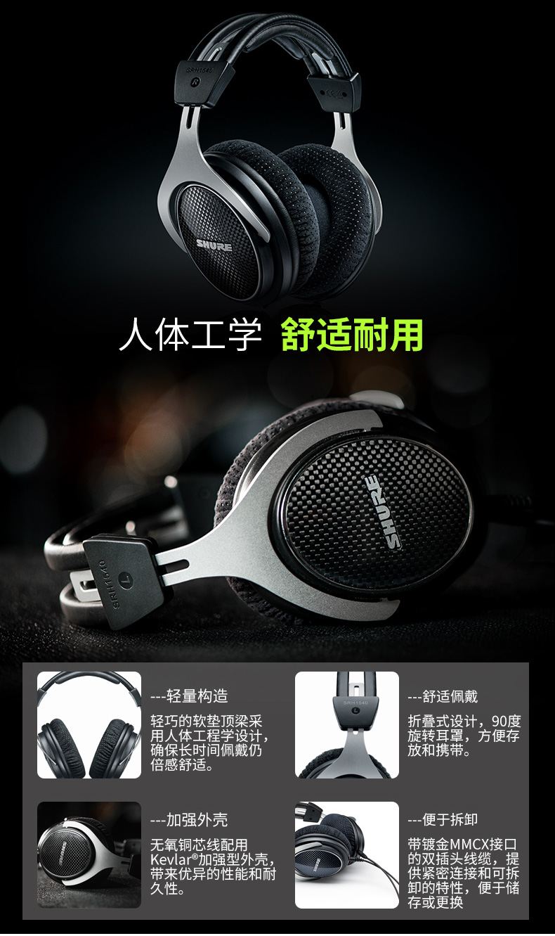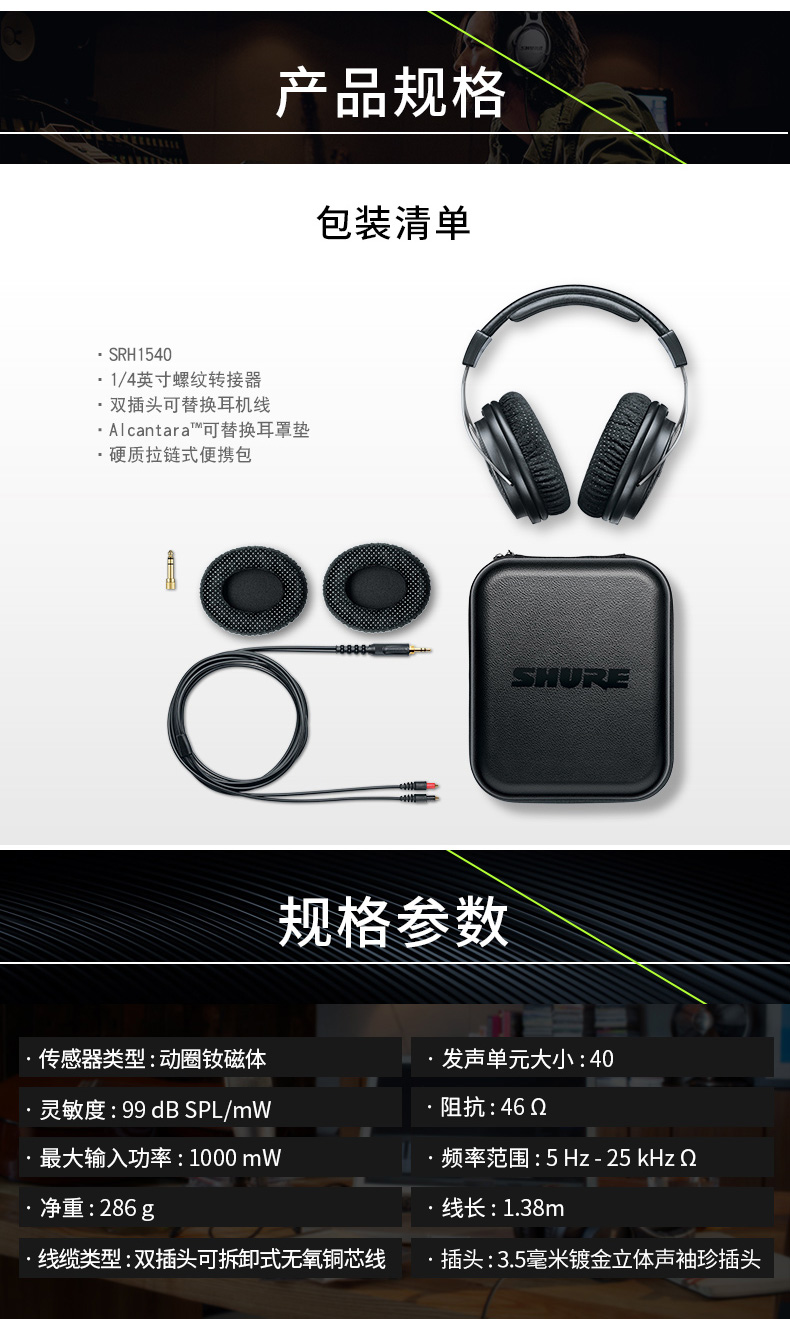 商品名称:Shure/舒尔 SRH1540 钕磁铁隔音 封闭头戴式