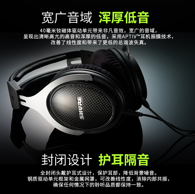 Shure/舒尔 SRH1540 钕磁铁隔音 封闭头戴式