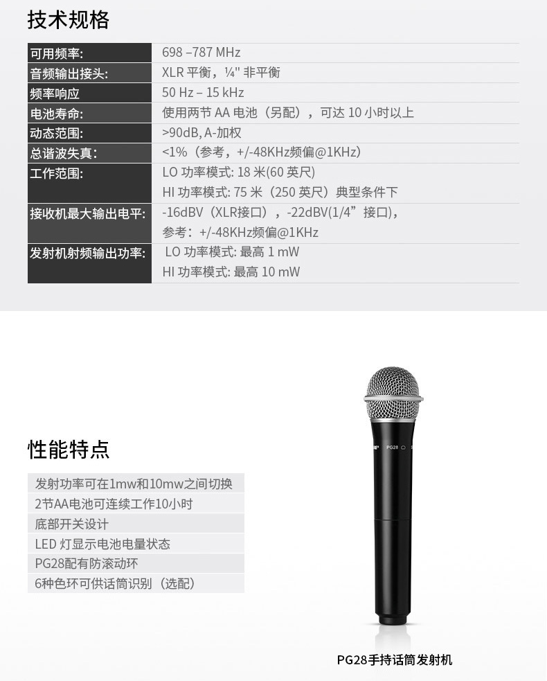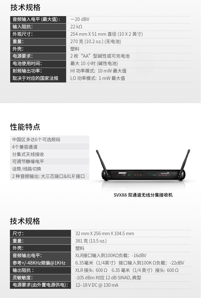 产品名称:Shure/舒尔 SVX288/PG28