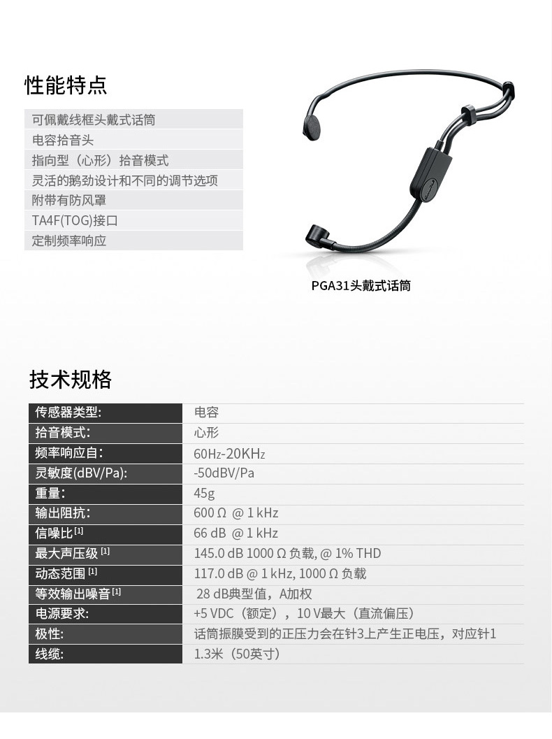 Shure/舒尔 SVX14/PGA31头戴式无线话筒 舞台演出演讲麦克风