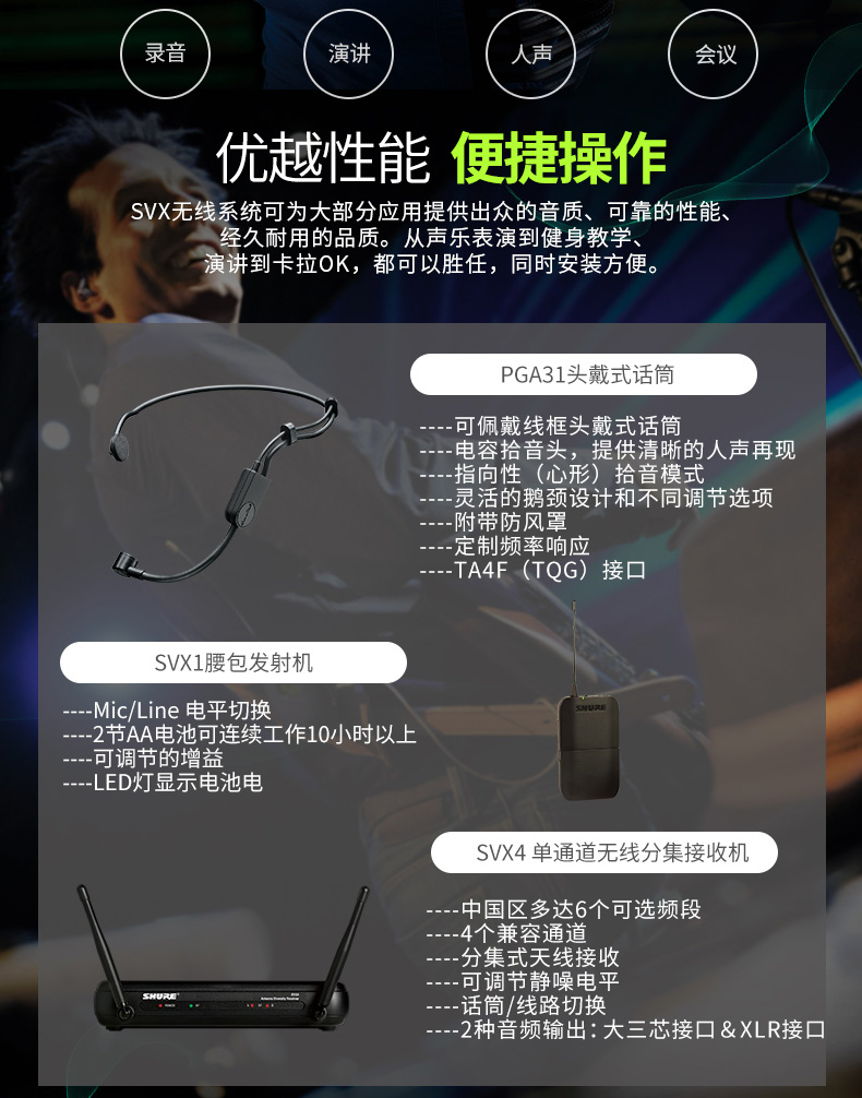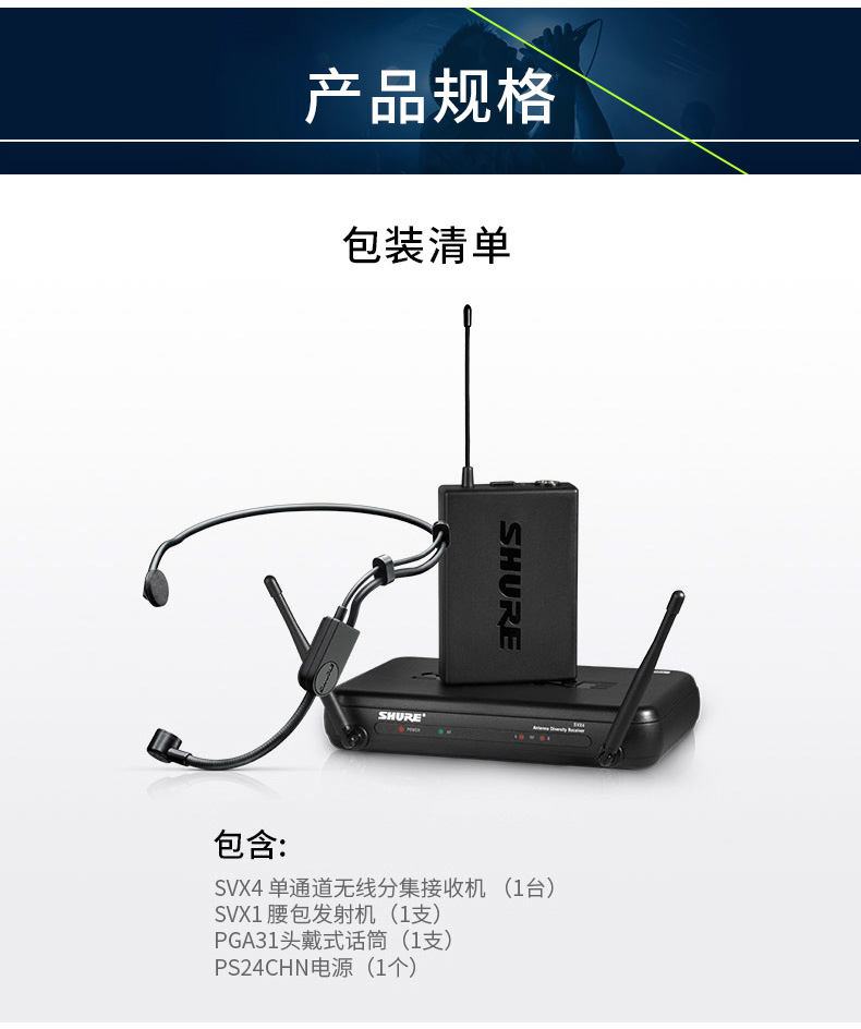 商品名称:Shure/舒尔 SVX14/PGA31头戴式无线话筒 舞台演出演讲麦克风