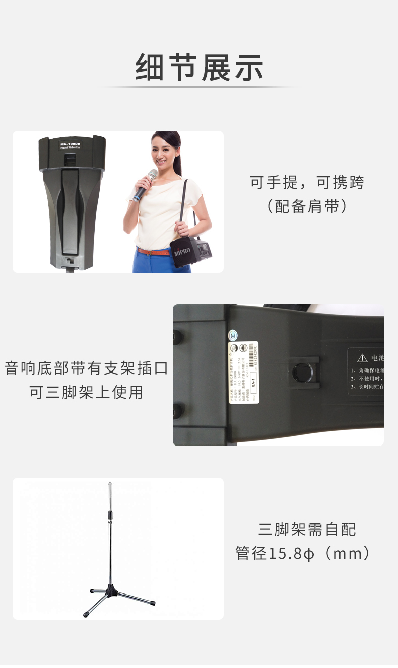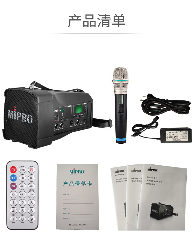 商品名称:MIPRO咪宝MA-100SB无线扩音器MA100SB便携喊话机户外音响