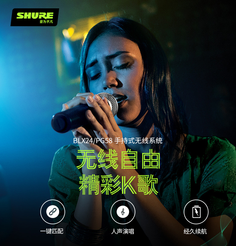 Shure/舒尔 BLX24/PG58 无线话筒直播演出会议家庭KTV专用麦克风