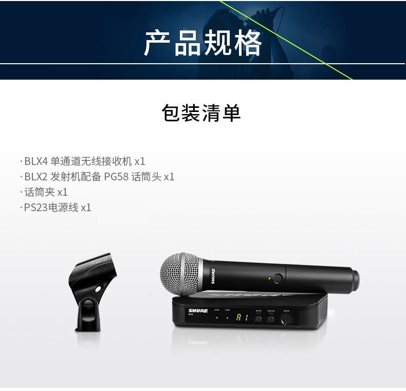 商品名称:Shure/舒尔 BLX24/PG58 无线话筒直播演出会议家庭KTV专用麦克风
