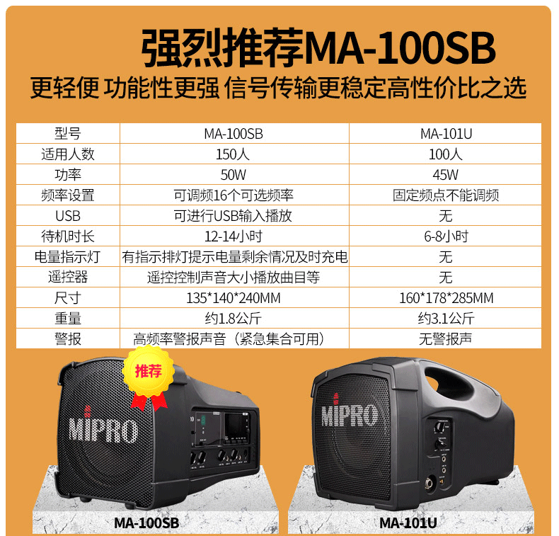 商品名称:mipro咪宝MA-101U无线扩音器MA101U户外便携式导游教师音响