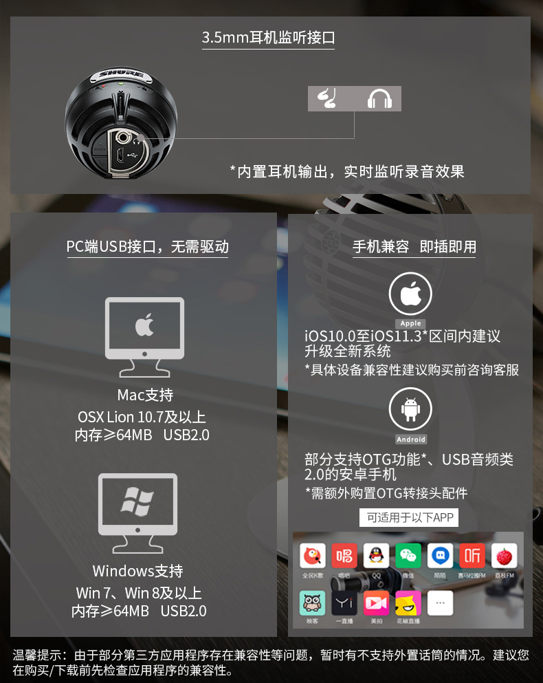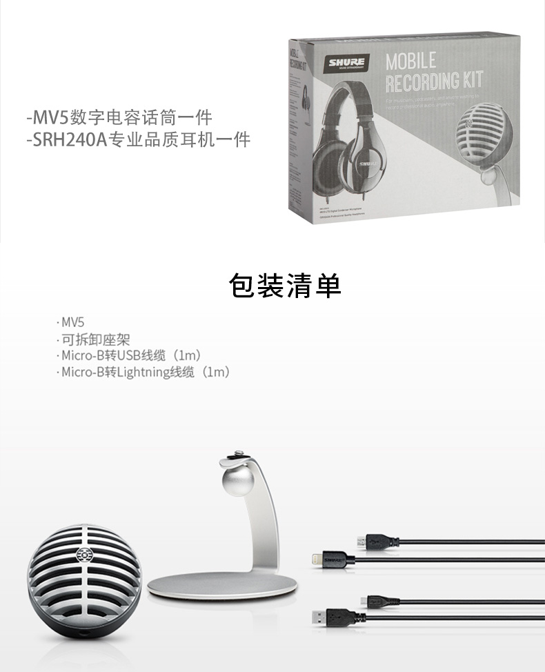 商品名称:Shure/舒尔 Mobile Recording Kit 手机话筒耳机K歌直播录音套装