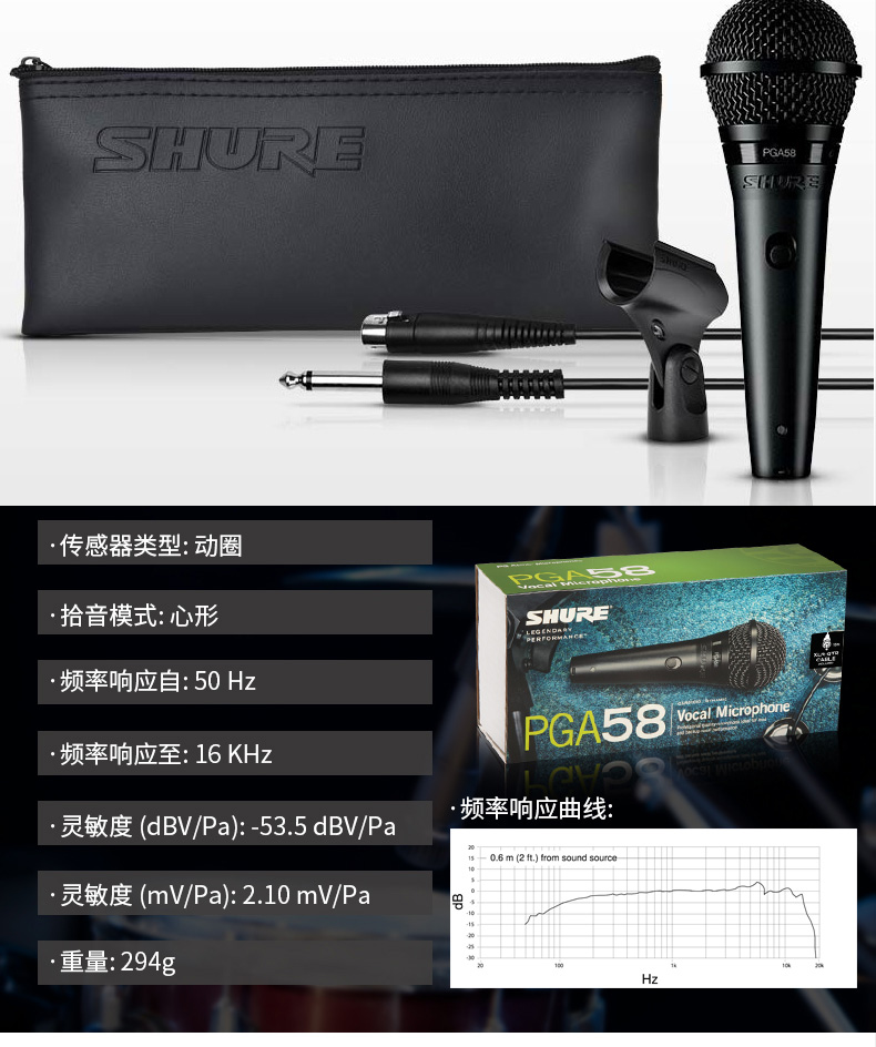 Shure/舒尔 PGA52LC动圈底鼓话筒 专业底鼓 低频乐器现场演出录音