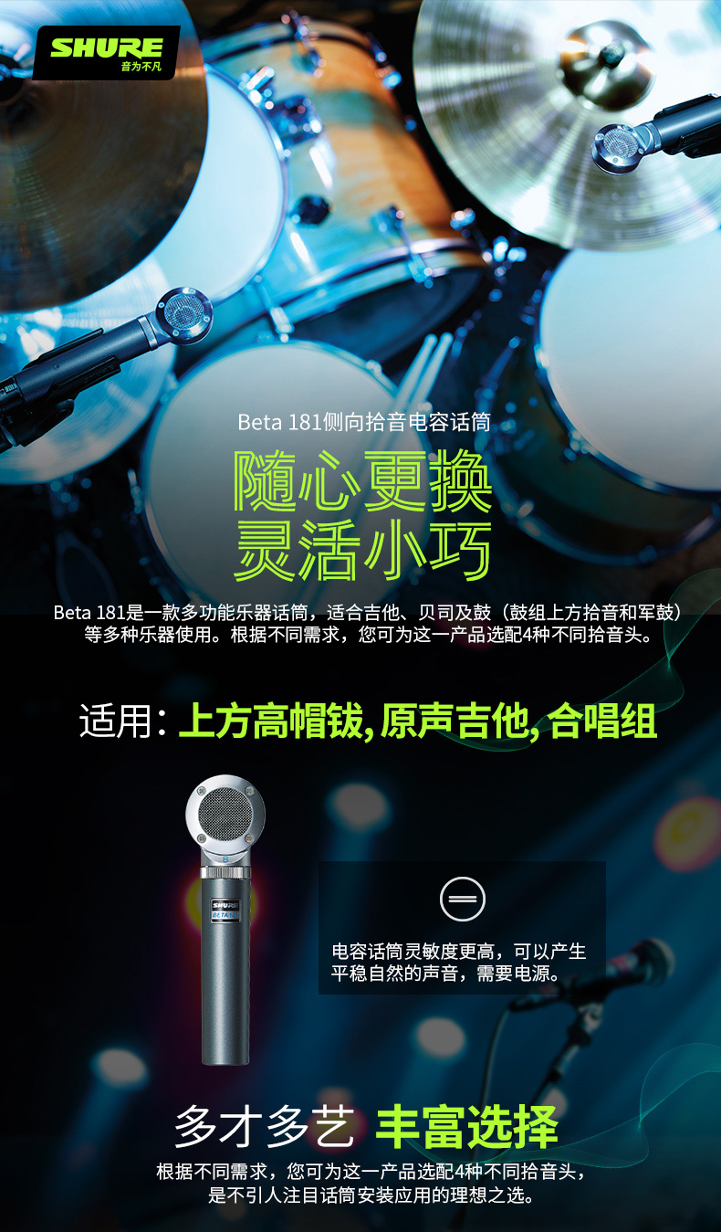 Shure/舒尔 BETA 181/S多种拾音有线乐器话筒 直播合唱乐队演出