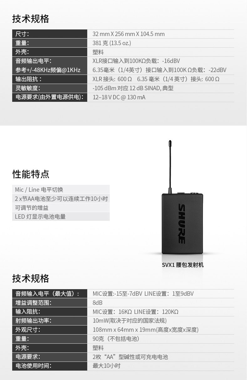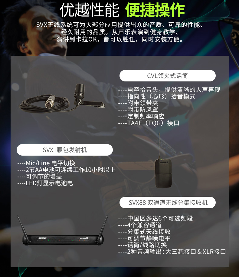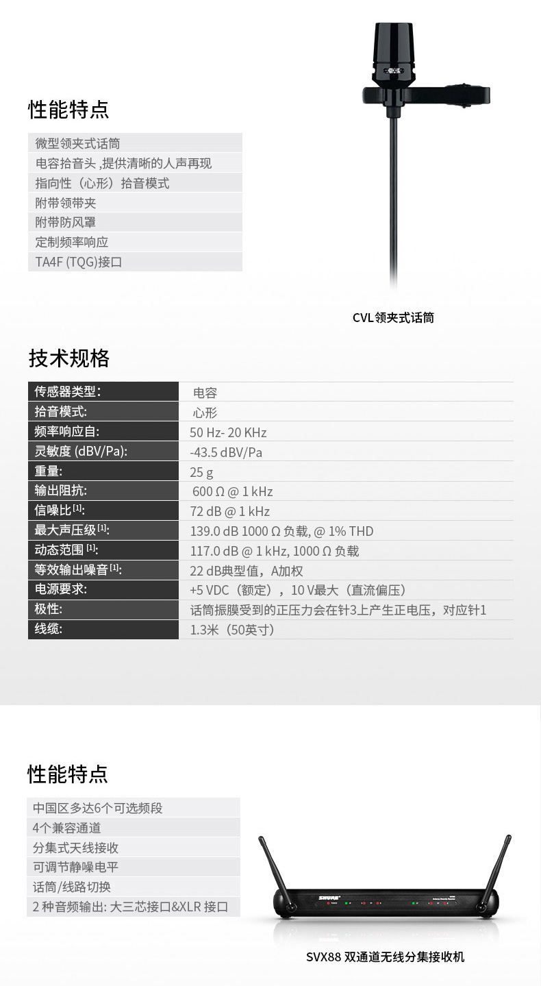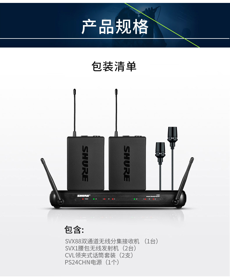 产品名称:Shure/舒尔 SVX188/CVL