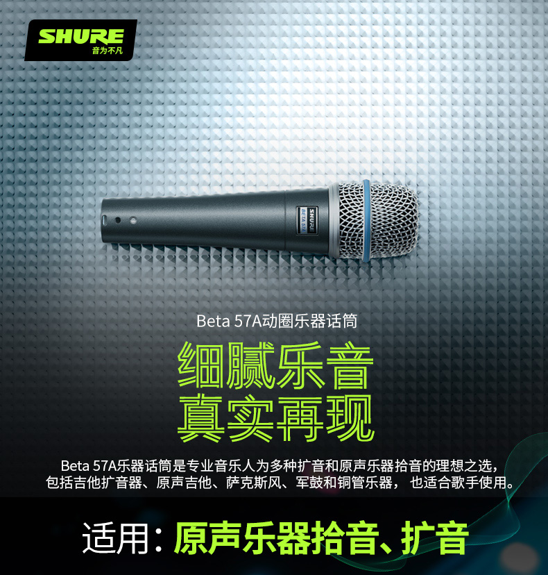 Shure/舒尔 BETA 57A直播动圈麦克风 军鼓铜鼓电吉他打击乐器话筒
