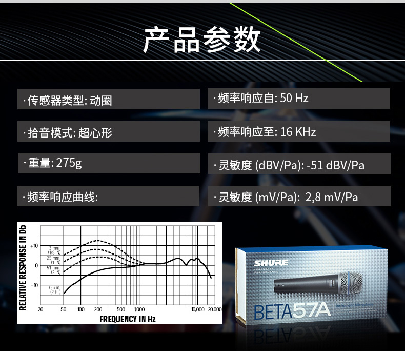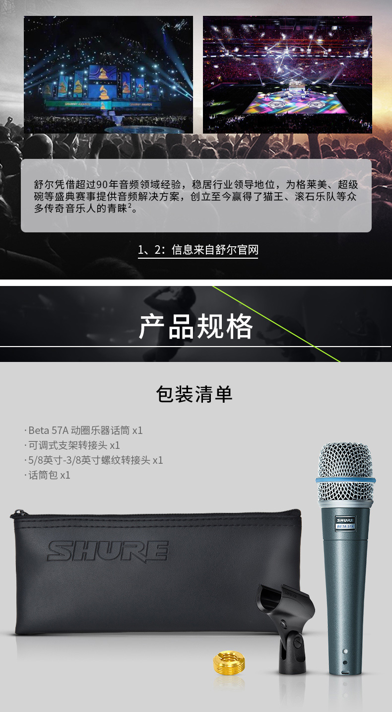 商品名称:Shure/舒尔 BETA 57A直播动圈麦克风 军鼓铜鼓电吉他打击乐器话筒