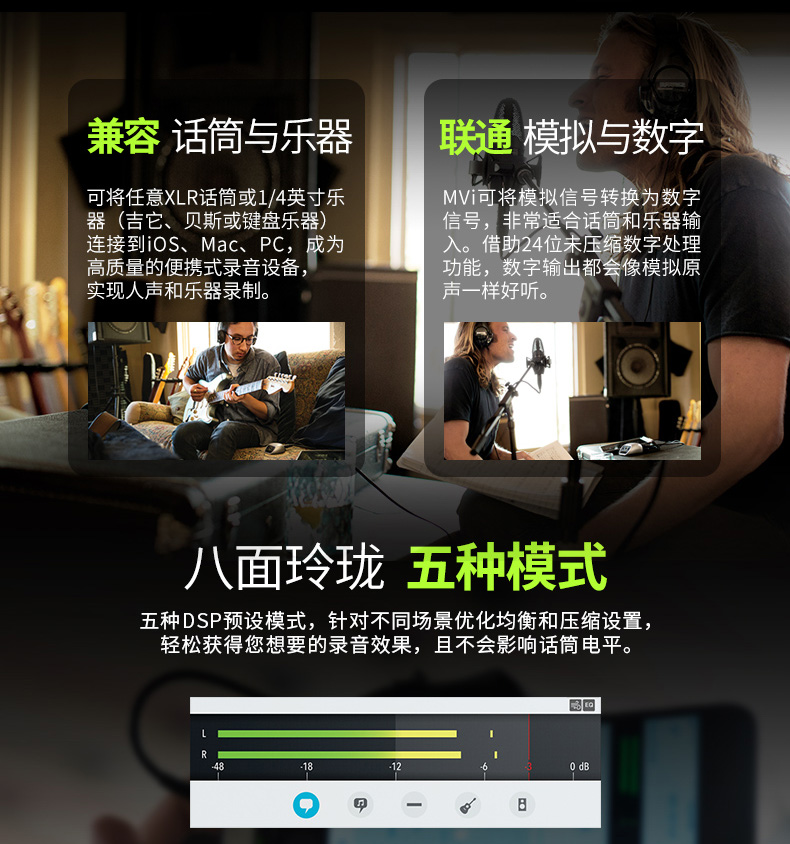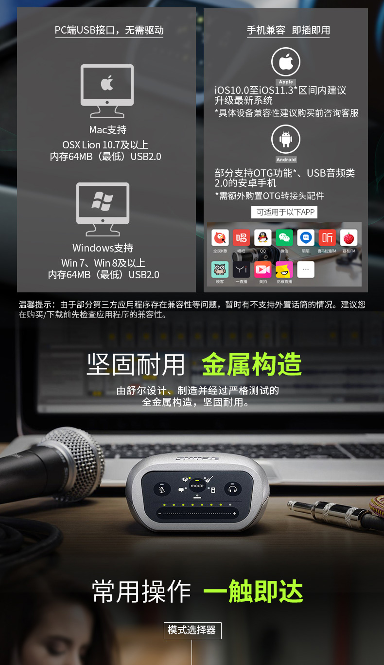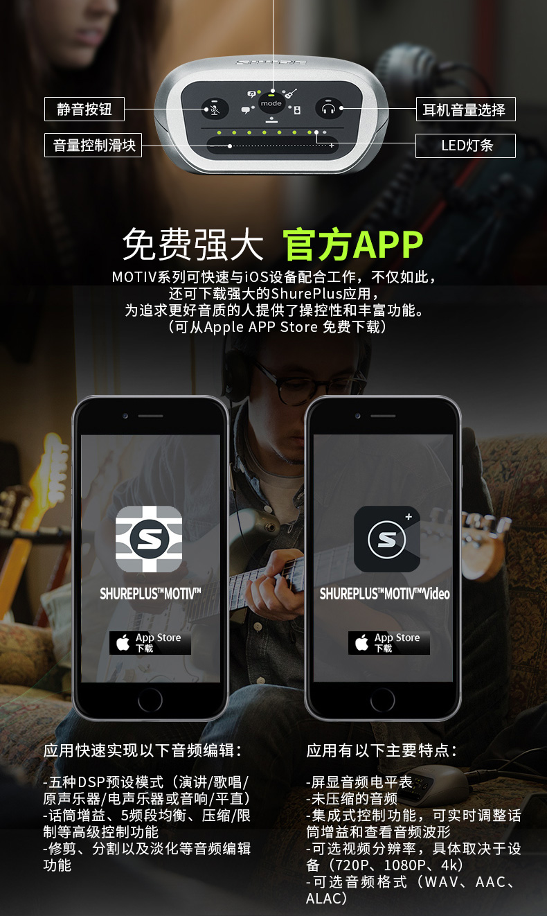 商品名称:Shure/舒尔 MVI便携式数字音频录音设备 高端触控面板 兼容性强