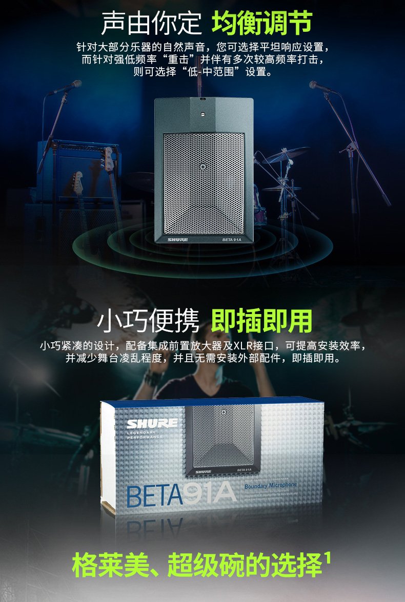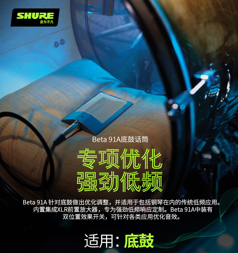 Shure/舒尔 BETA 91A底鼓乐器电容界面话筒 适用于钢琴等低频拾音