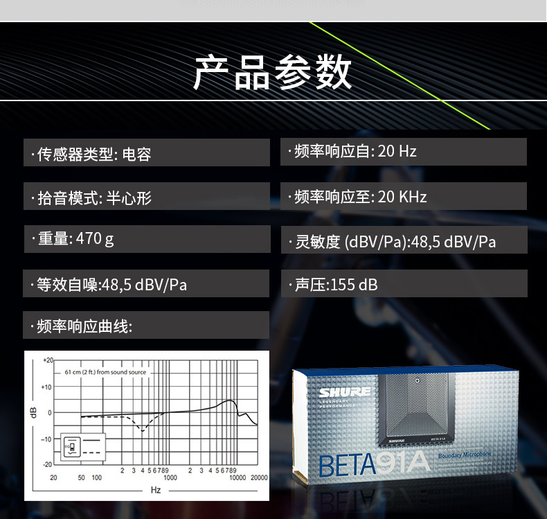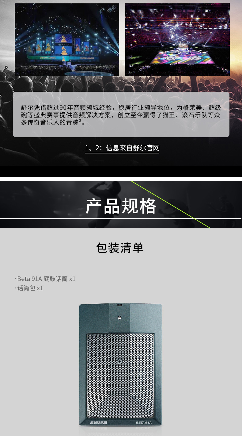 商品名称:Shure/舒尔 BETA 91A底鼓乐器电容界面话筒 适用于钢琴等低频拾音