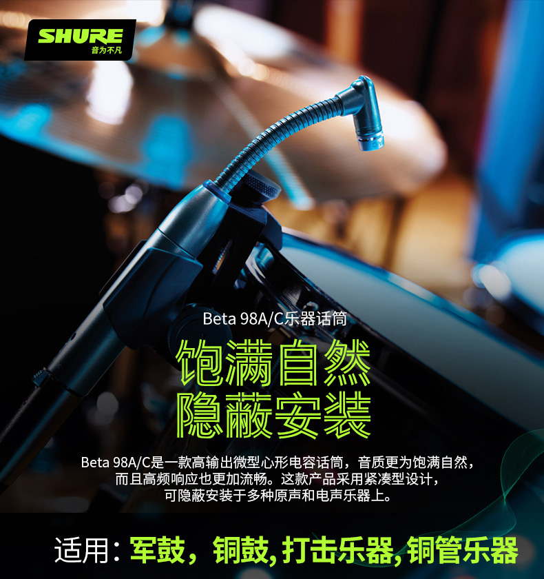 Shure/舒尔 BETA 98A/C军鼓铜鼓铜管乐器等有线乐器电容话筒