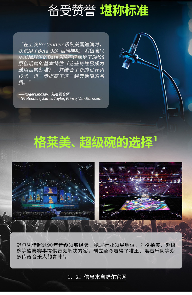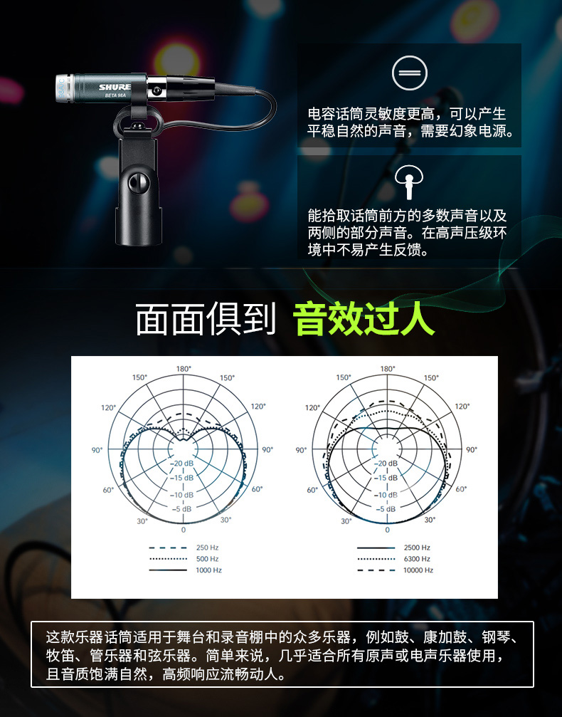 商品名称:Shure/舒尔 BETA 98A/C军鼓铜鼓铜管乐器等有线乐器电容话筒