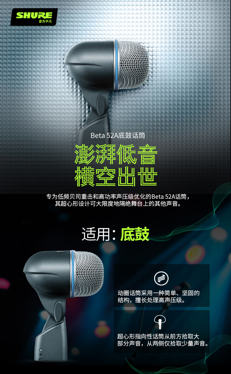 Shure/舒尔 BETA 52A底鼓贝司乐器麦克风 舞台演出直播录音话筒