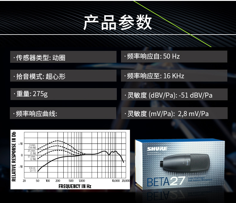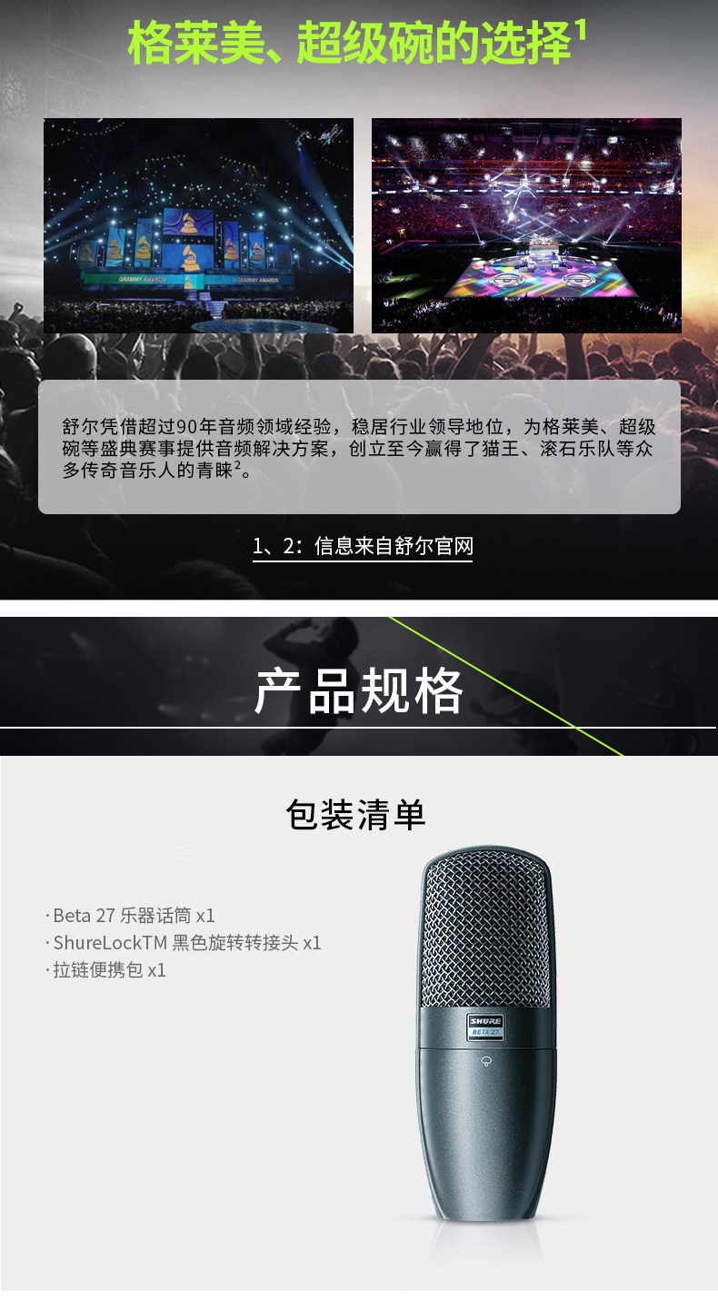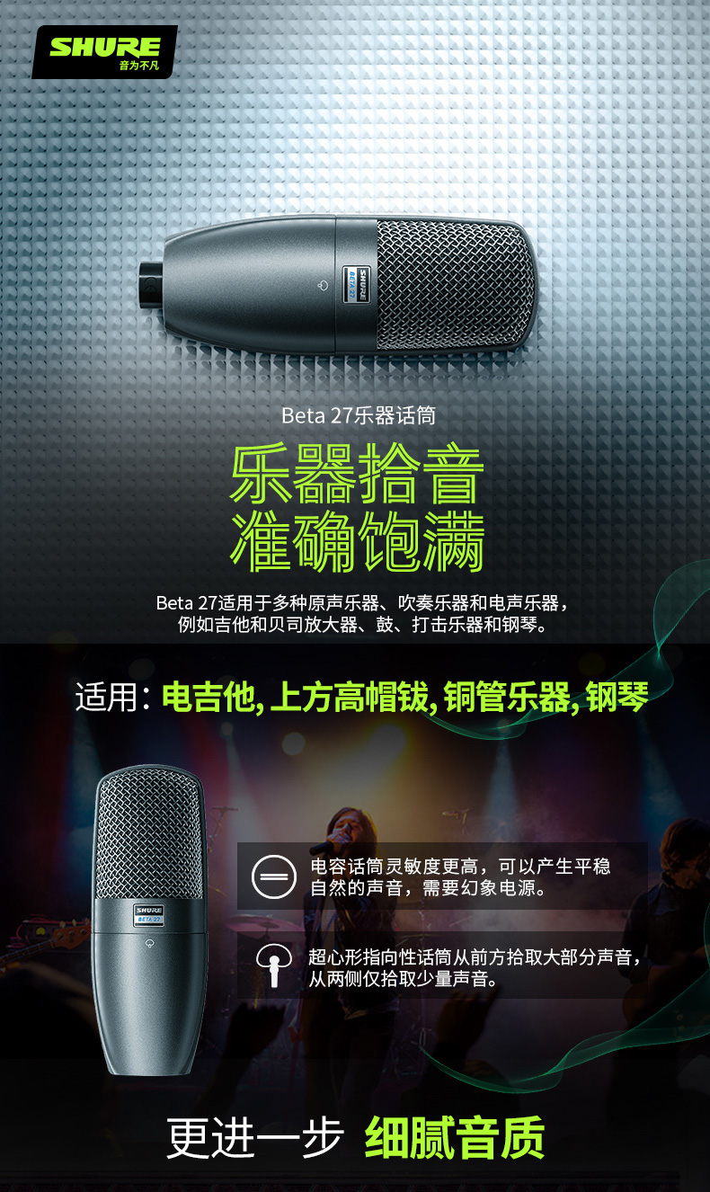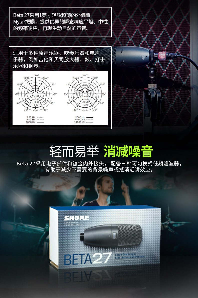 商品名称:Shure/舒尔 BETA 27大振膜电容乐器麦克风 适用舞台演出多种乐器
