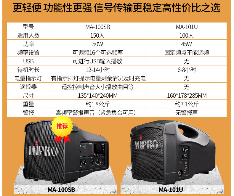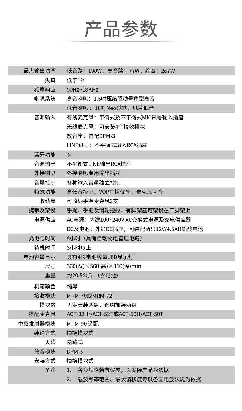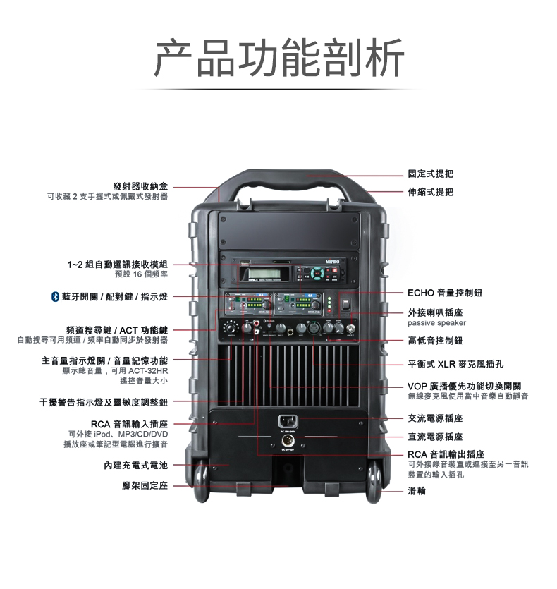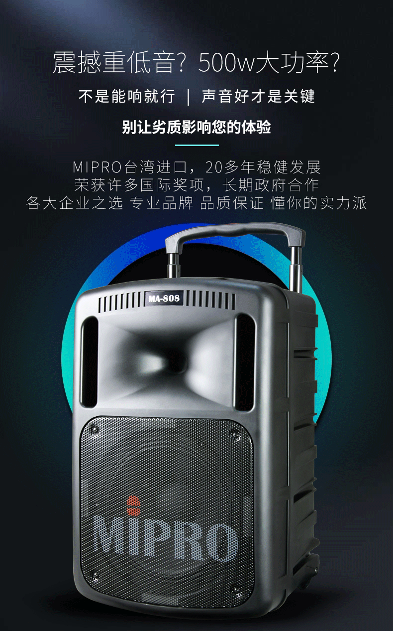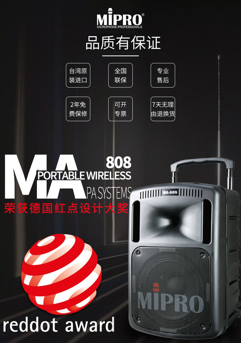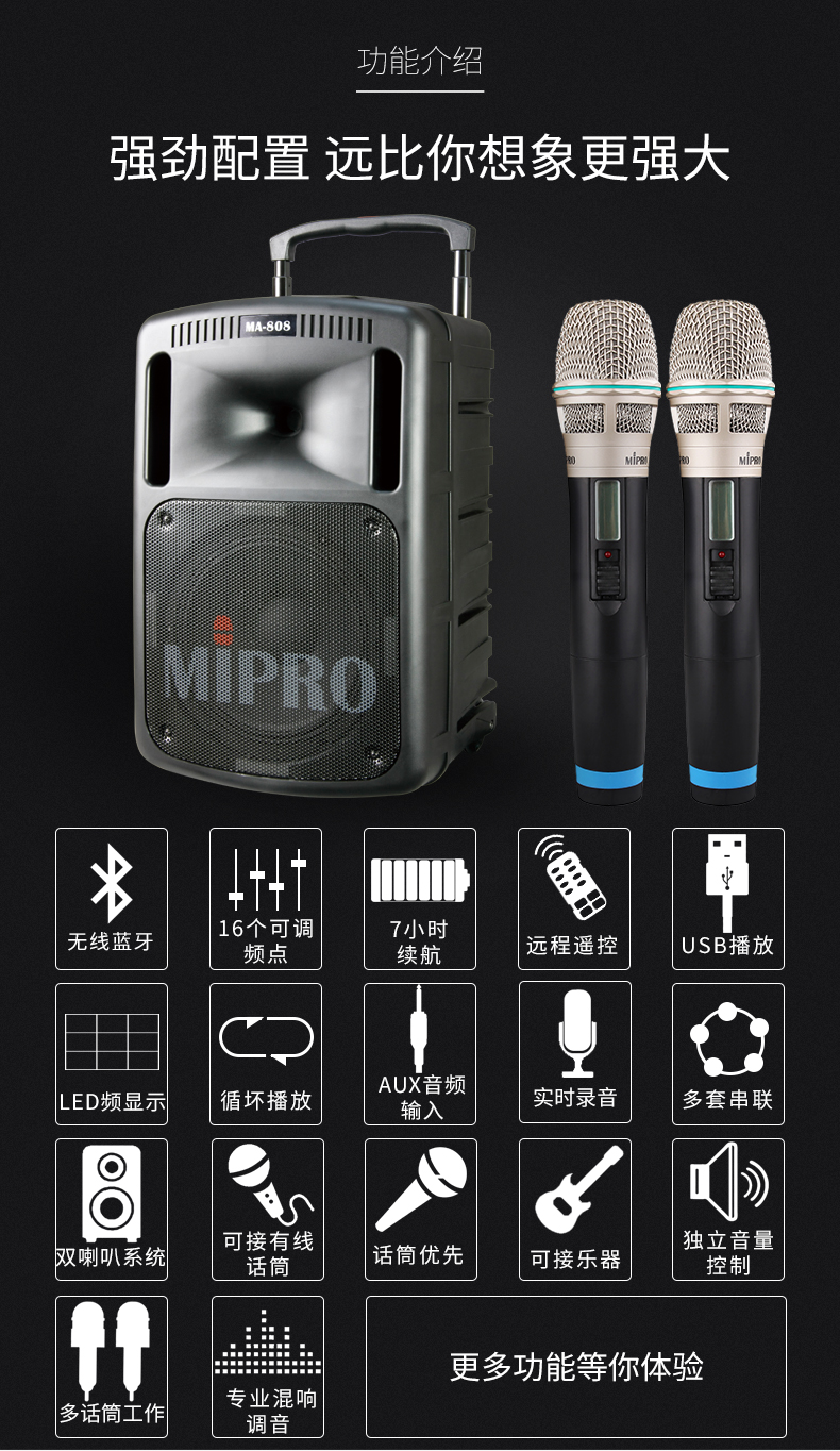 商品名称:【Mipro】台湾咪宝MA-808无线音箱MA808户外蓝牙拉杆音响
