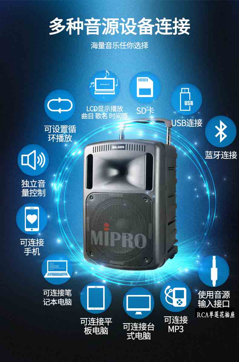 【Mipro】台湾咪宝MA-808无线音箱MA808户外蓝牙拉杆音响