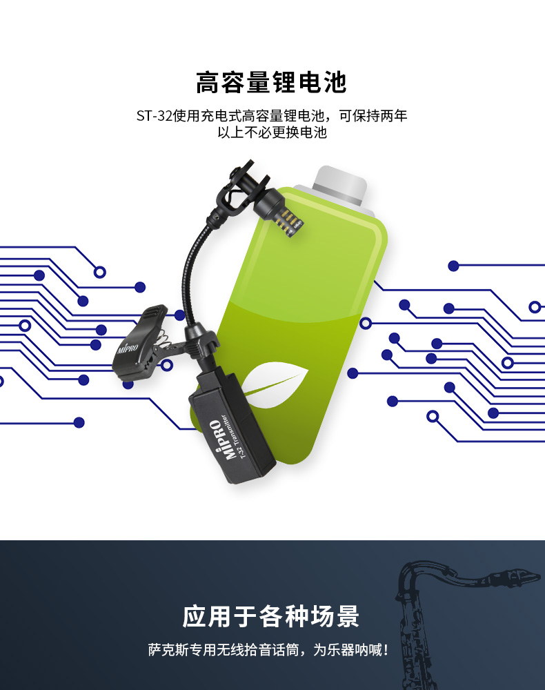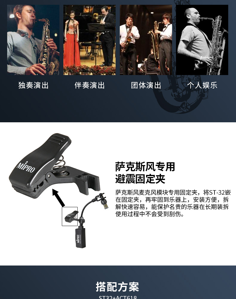 MIPRO st-32萨克斯无线话筒舞台专业乐器麦克风萨克斯音响音箱