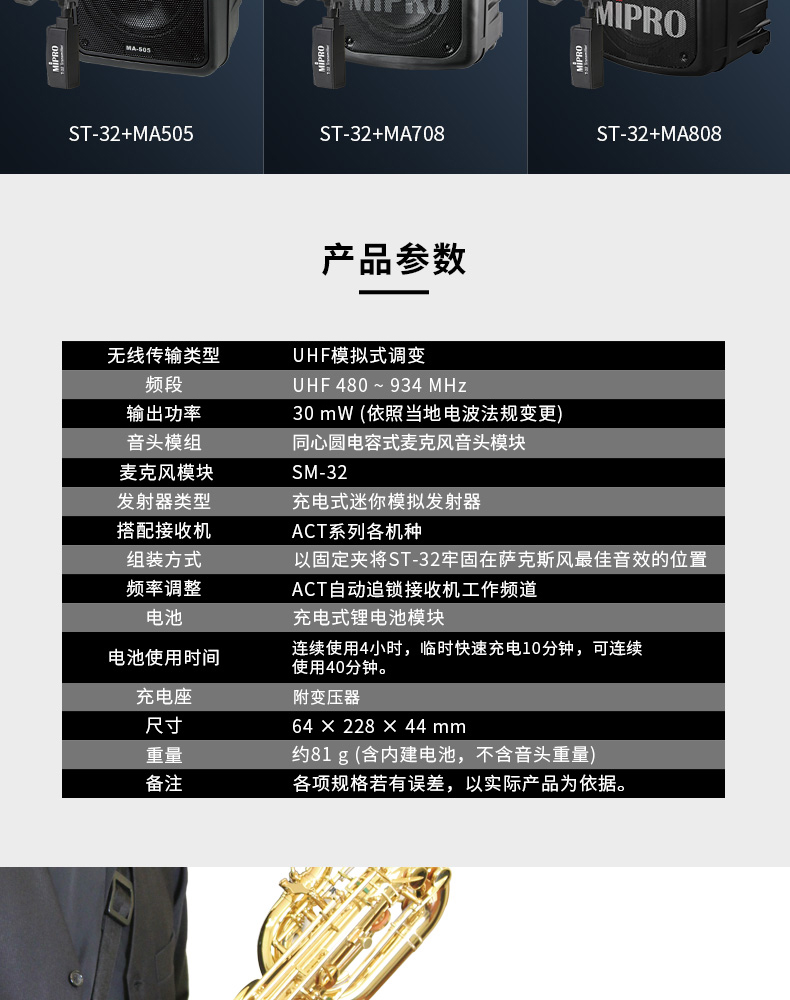 商品名称:MIPRO st-32萨克斯无线话筒舞台专业乐器麦克风萨克斯音响音箱