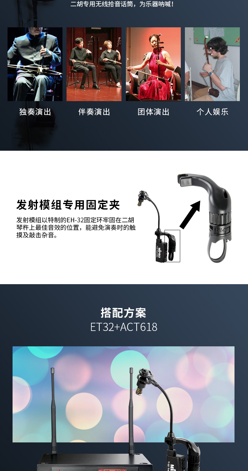 商品名称:MIPRO Et-32二胡无线话筒套装胡琴专业麦克风乐器拾音扩音机演出