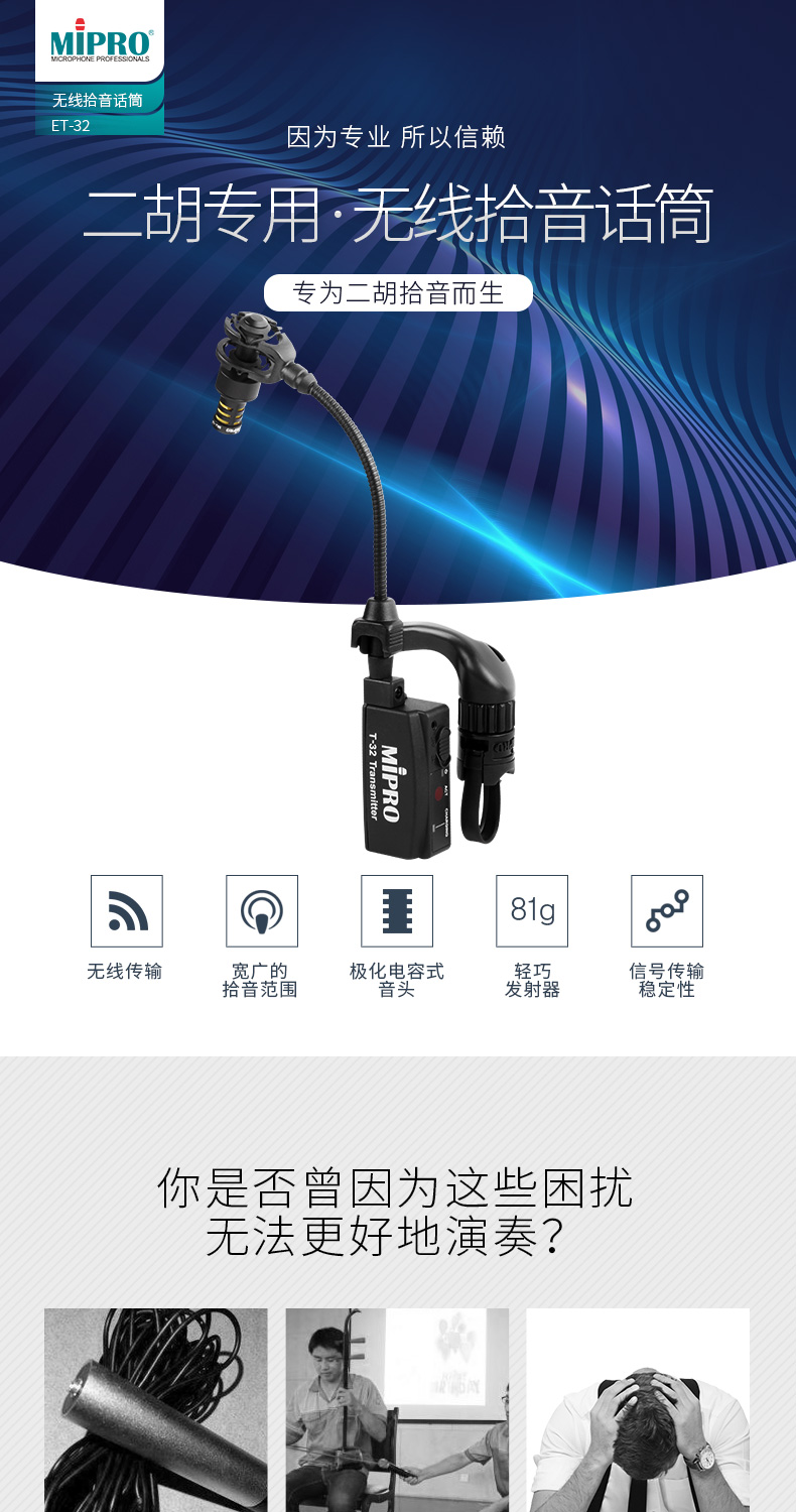 无线便捷 中小提琴专用话筒