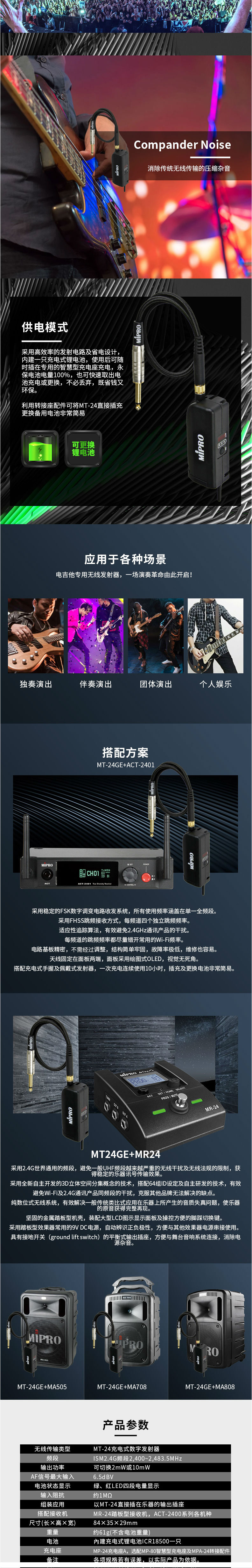 商品名称:MIPRO MT-24GE电吉他无线话筒专业数字麦克风套专用乐器拾音2.4G