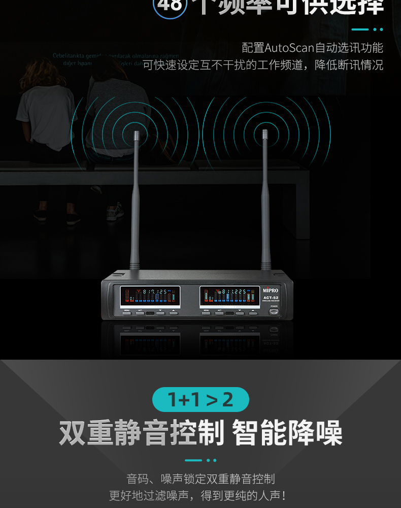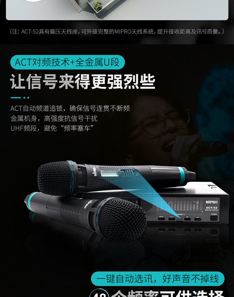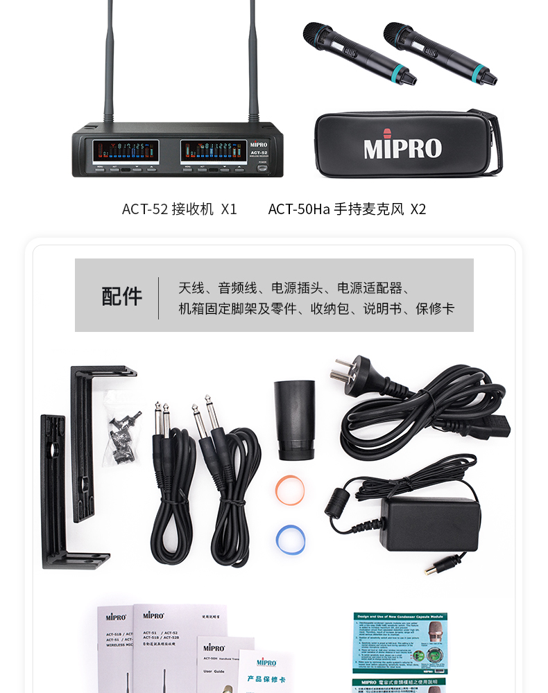 MIPRO ACT-52咪宝无线话筒电容麦克风一拖二K歌家用领夹专业演唱