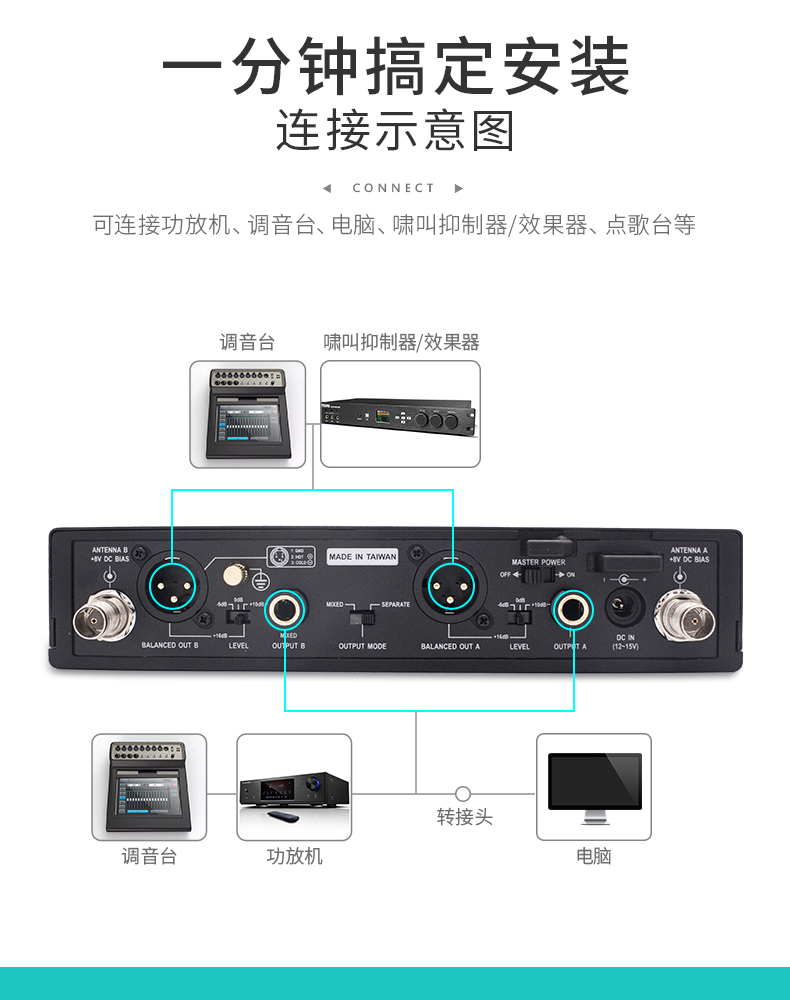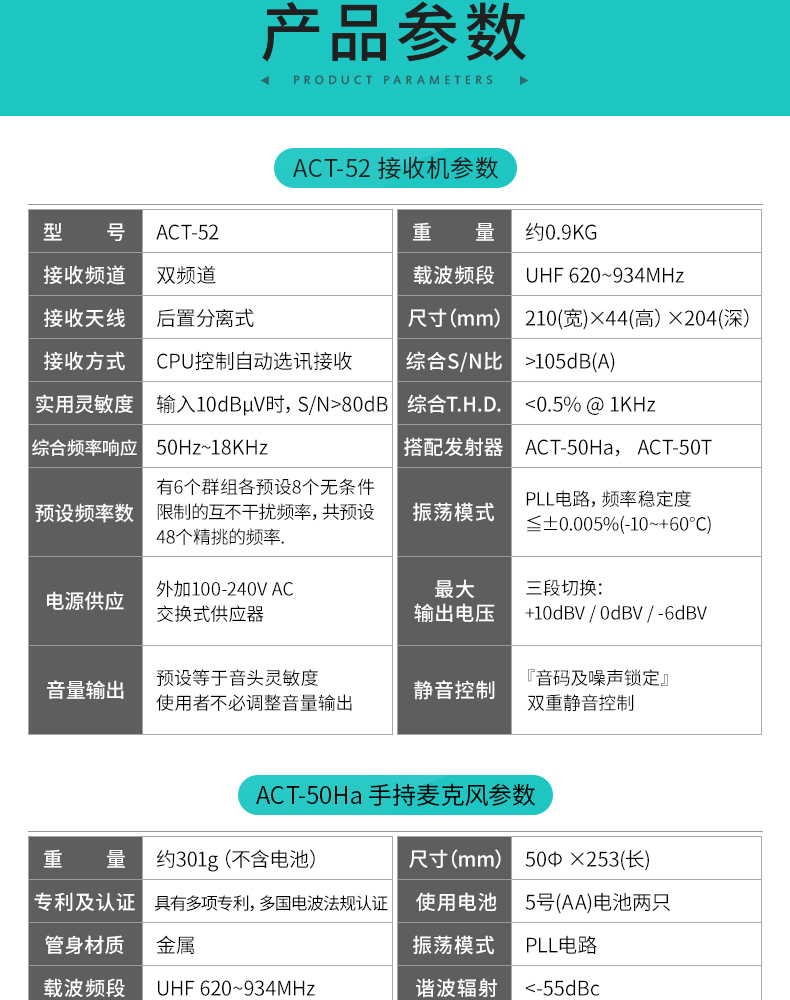 商品名称:MIPRO ACT-52咪宝无线话筒电容麦克风一拖二K歌家用领夹专业演唱