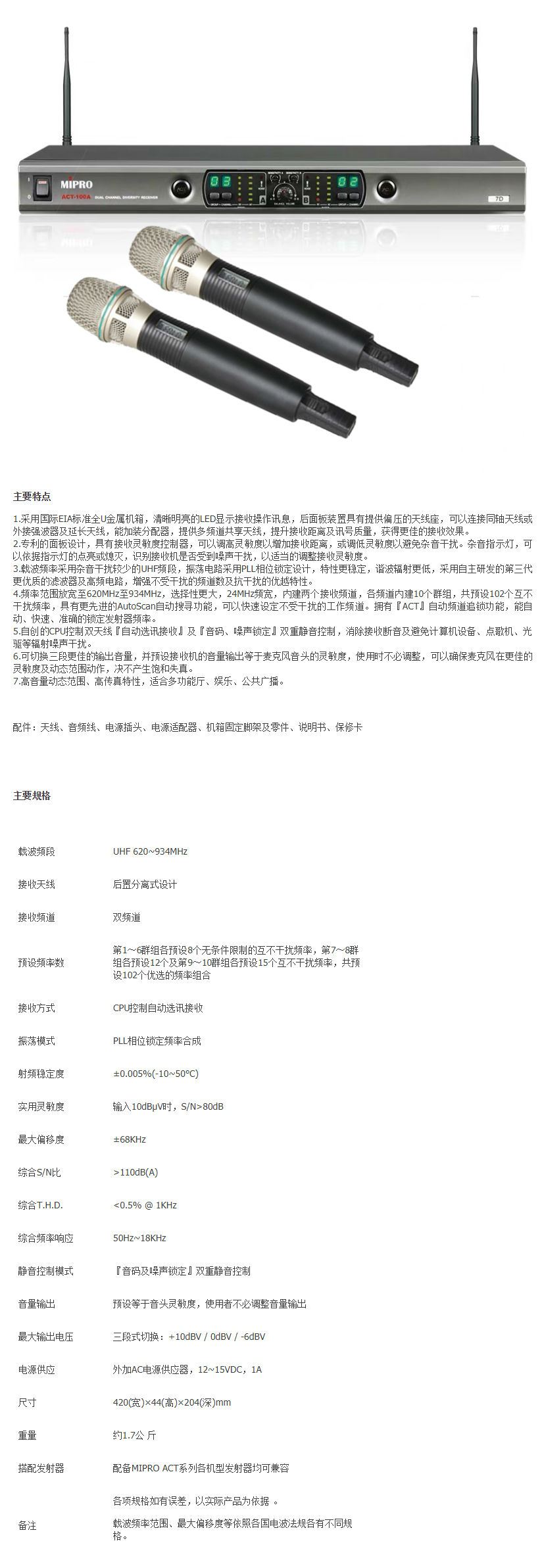 产品名称:MIPRO ACT-100A
