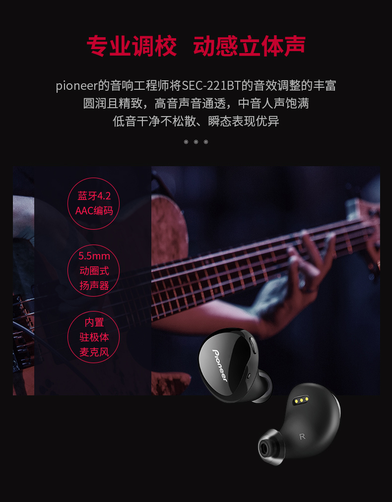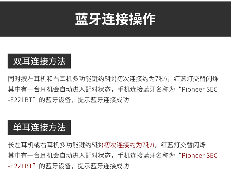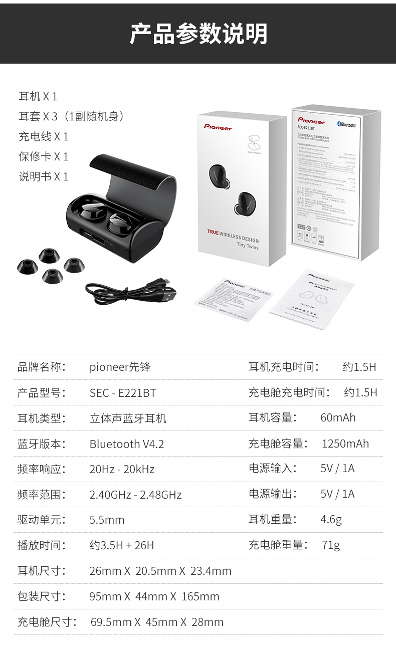 商品名称:Pioneer/先锋 E221BT真无线蓝牙耳机入耳式音乐立体声运动耳塞