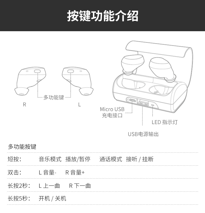 真无线蓝牙耳机 超长续航 应急手机充电