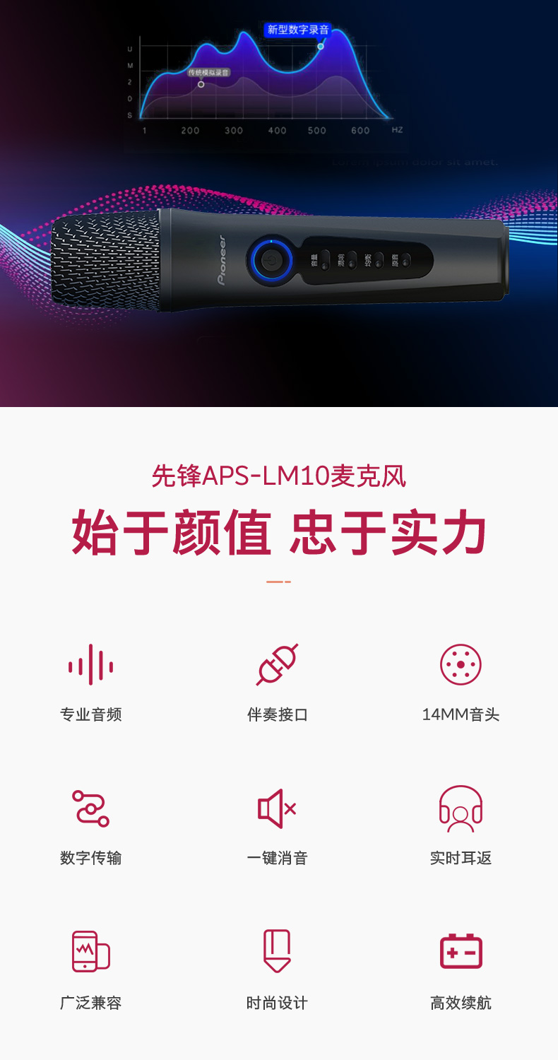 Pioneer/先锋APS-LM10麦克风直播手机专用话筒K歌神器内置声卡