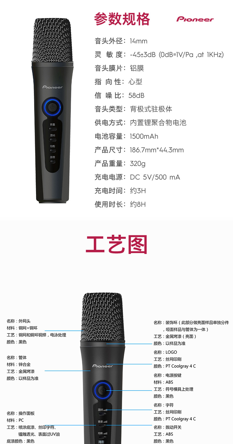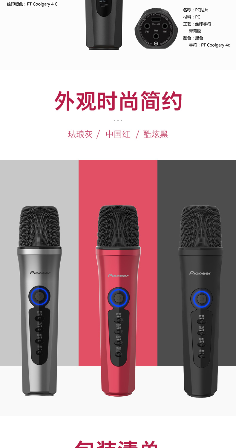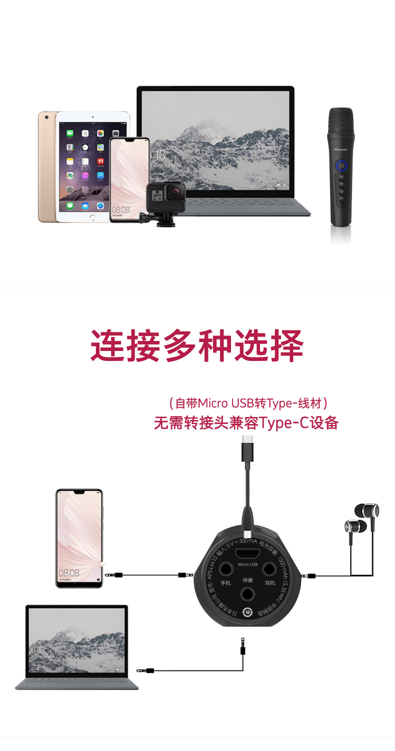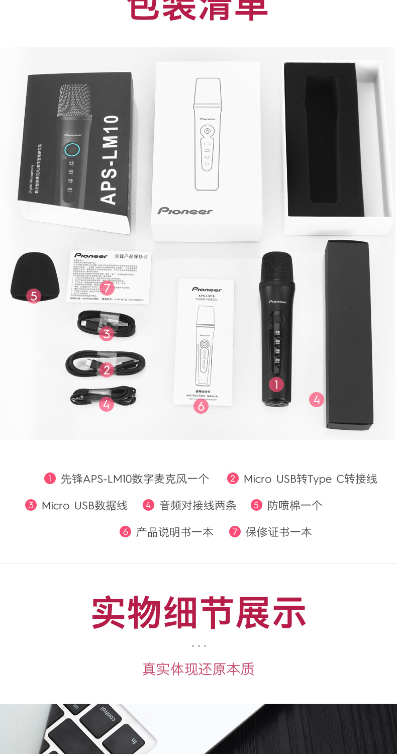 商品名称:Pioneer/先锋APS-LM10麦克风直播手机专用话筒K歌神器内置声卡