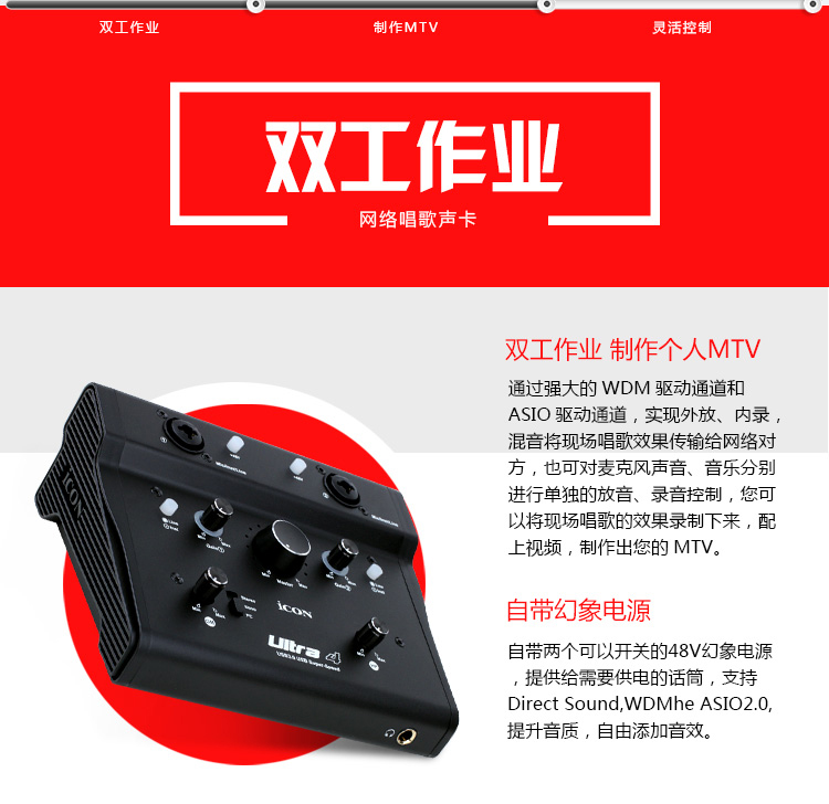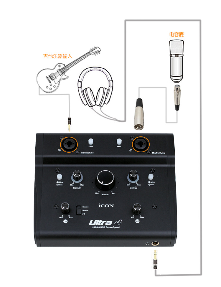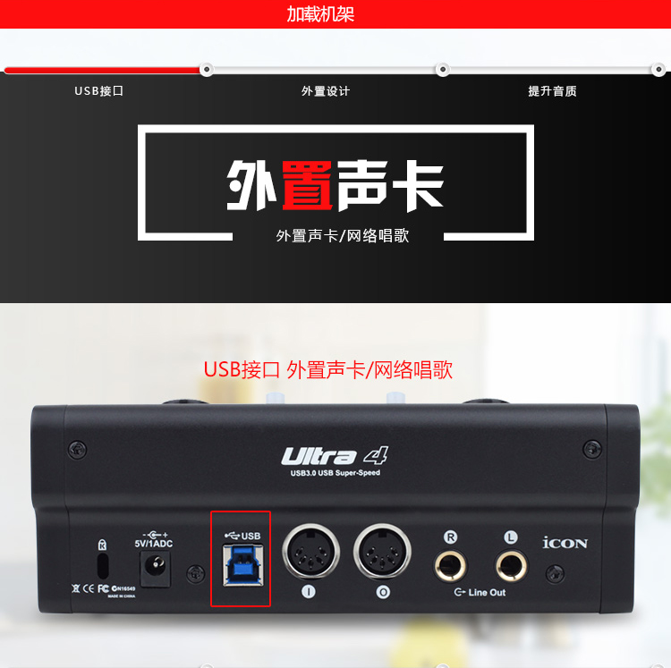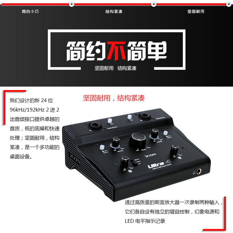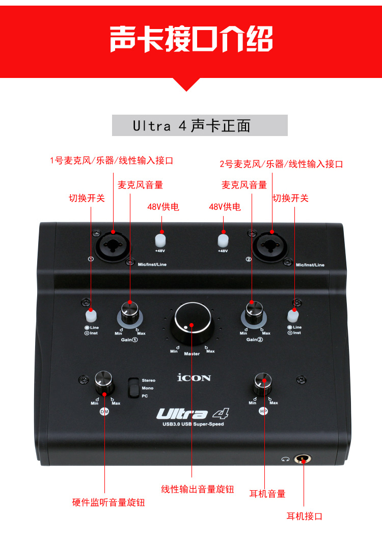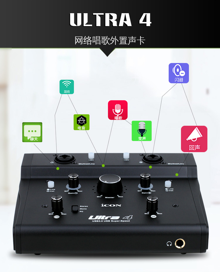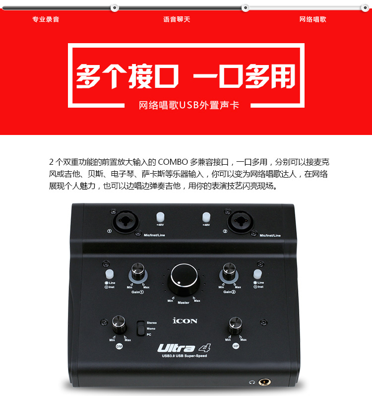艾肯ICON Ultra 4网红主播外置高端USB声卡专业录音棚级唱歌专用电脑台式机笔记本手机通用K歌直播麦克风套装