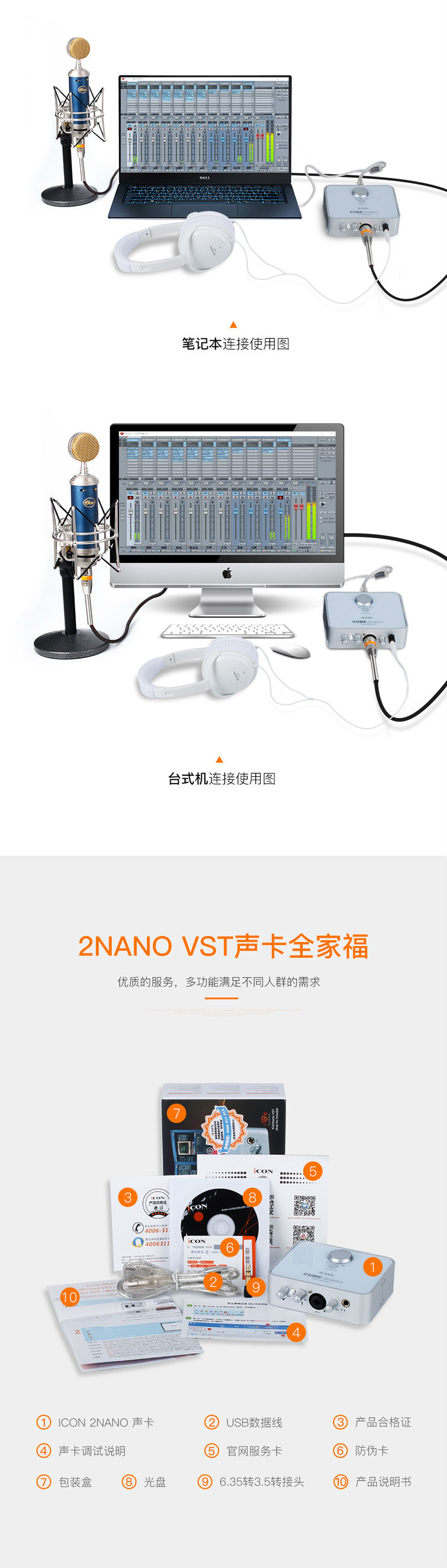 商品名称:艾肯ICON 2nano网红主播外置高端USB声卡唱歌录音专用手机麦克风套装电脑台式机笔记本通用全民K歌陌陌YY直播