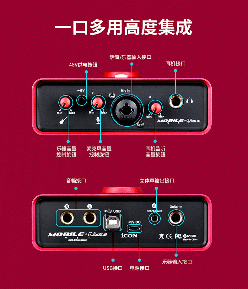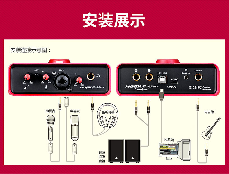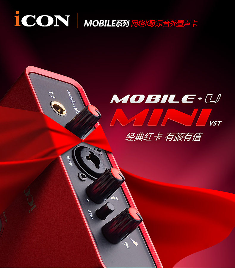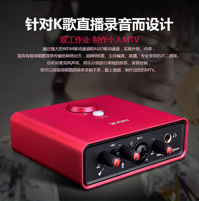 艾肯ICON mini网红主播外置USB声卡唱歌录音专用手机台式机电脑笔记本通用YY陌陌全民K歌直播麦克风套装
