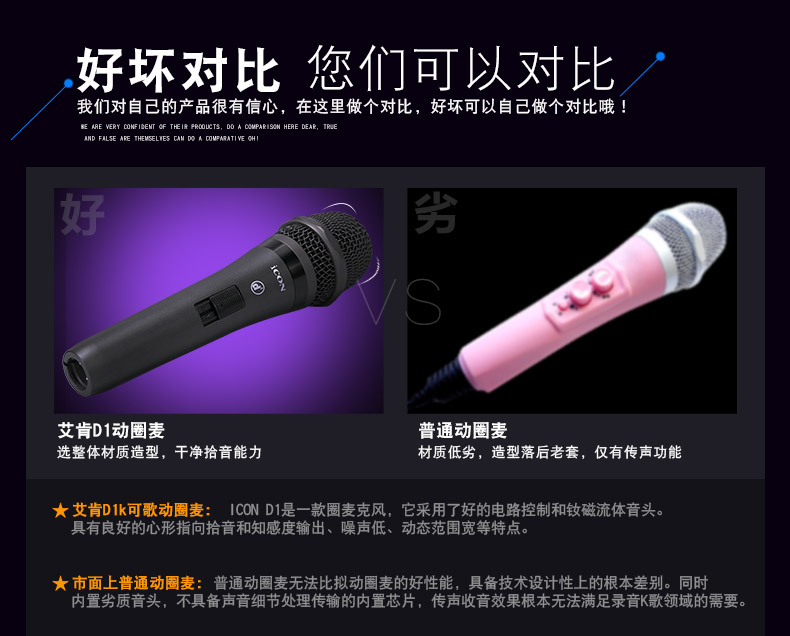 艾肯ICON D1手持动圈麦克风话筒户外主播K歌直播设备全套台式机笔记本电脑通用手机唱歌专用声卡套装