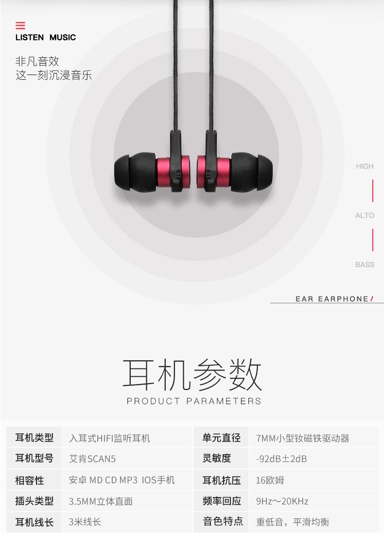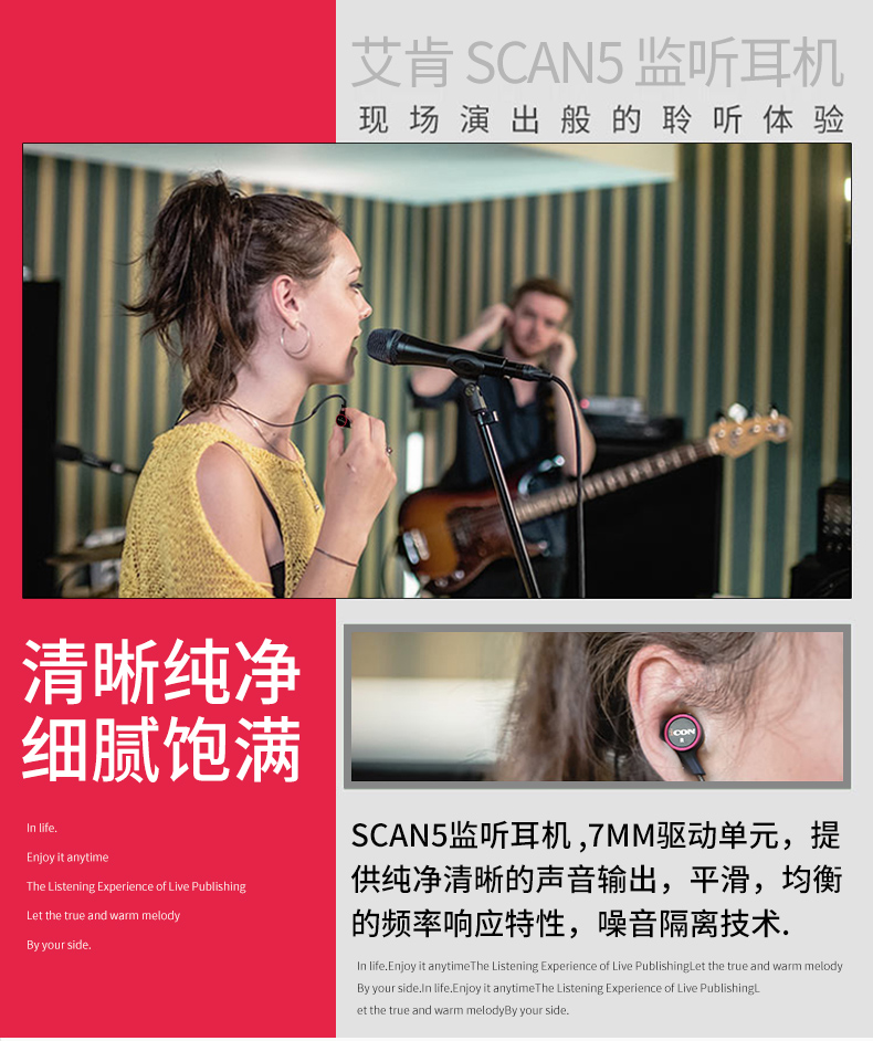 艾肯ICON Scan5耳机入耳式HIFI高保真直播专用监听降噪耳塞3米长有线苹果安卓手机电脑台式机笔记本通用