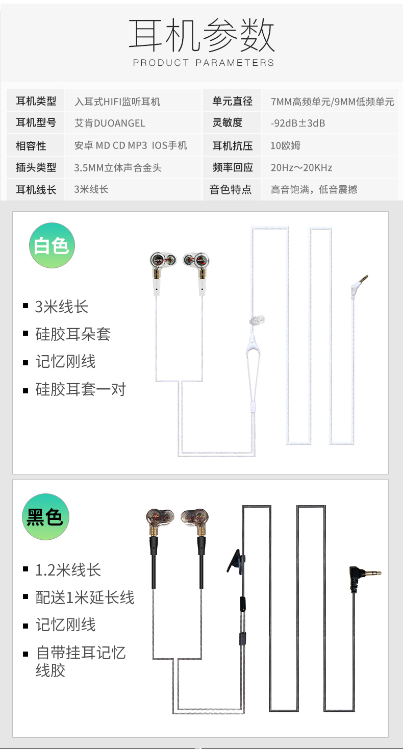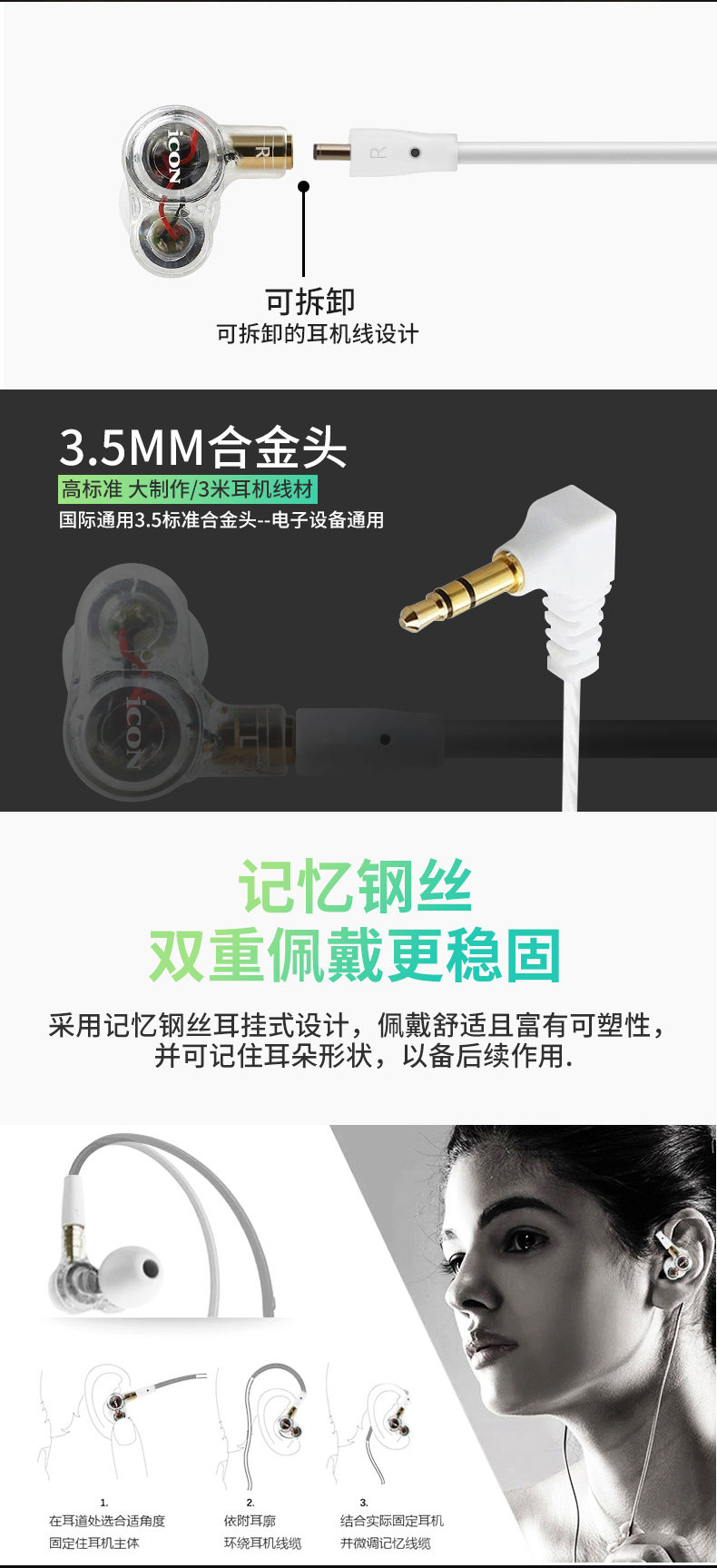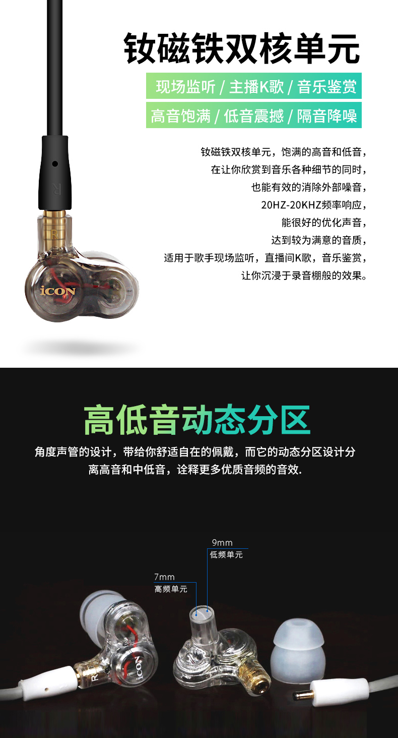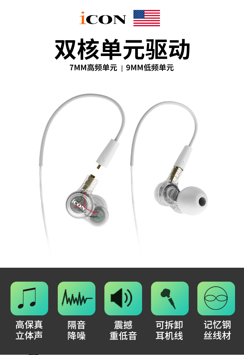 艾肯ICON DuoAngel入耳式监听耳机挂耳式重低音主播直播音乐降噪耳塞安卓苹果手机电脑台式机笔记本通用