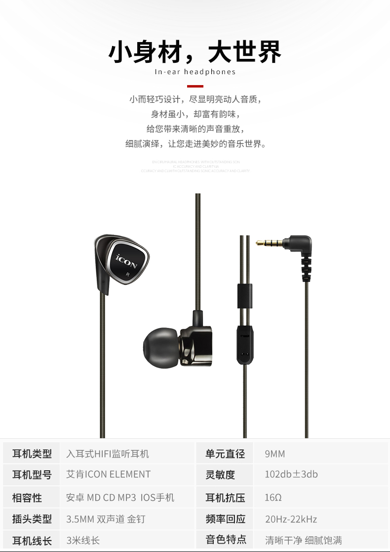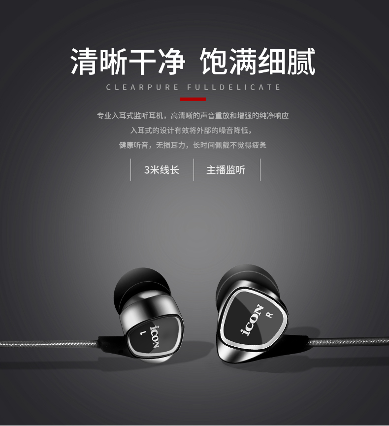 艾肯ICON Element重低音耳机有线入耳式主播直播电脑声卡监听HIFI高保真耳塞长3米